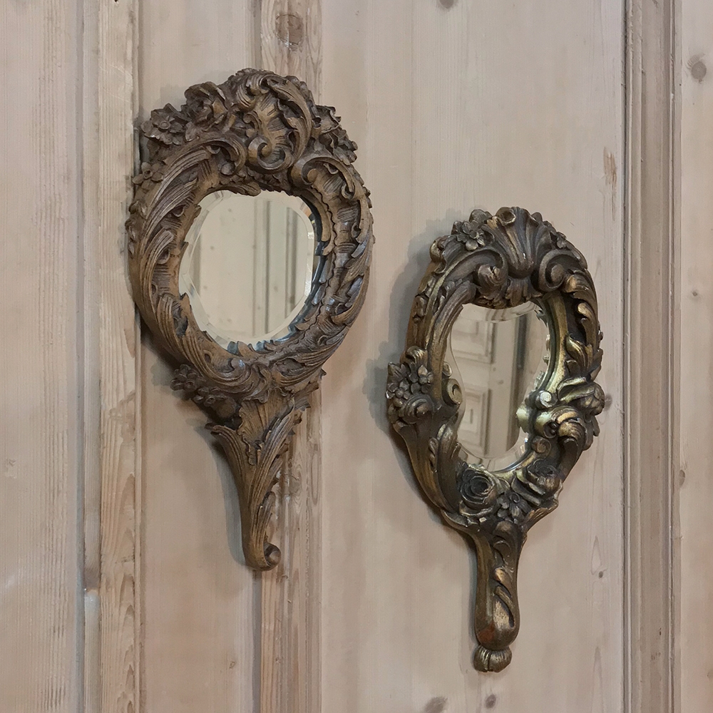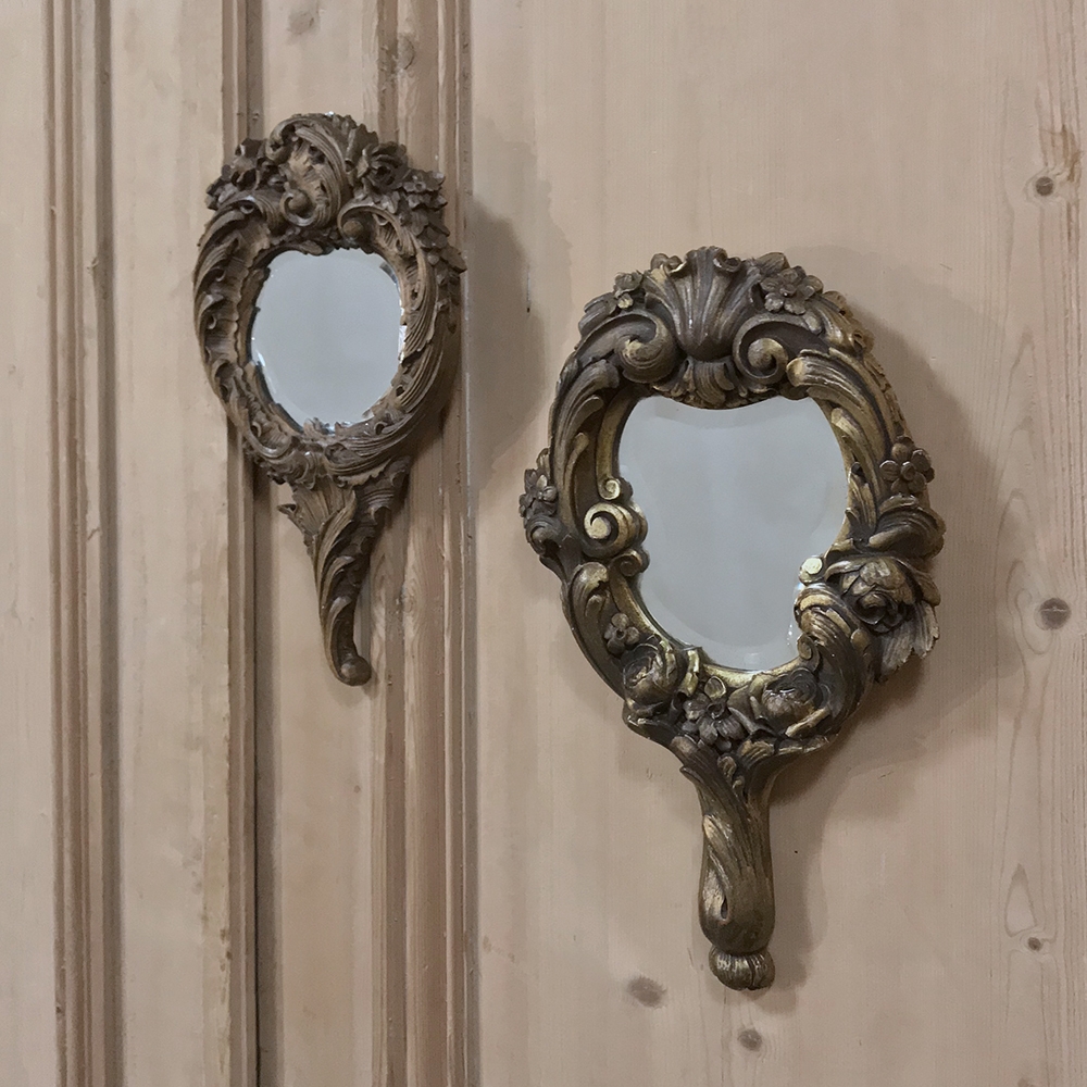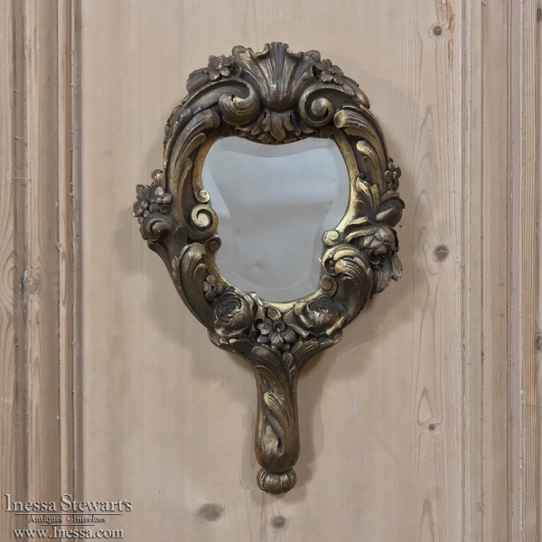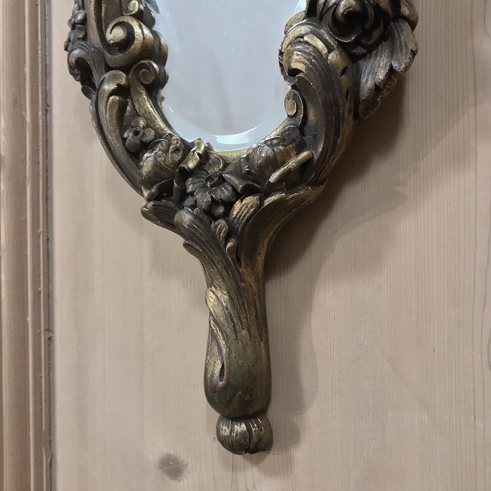 19th Century Hand-Carved Giltwood Hand Mirror is a miraculously artistic expression of the wood sculptor's art! Shown in three images with a similarly impressive mirror, sold separately.
