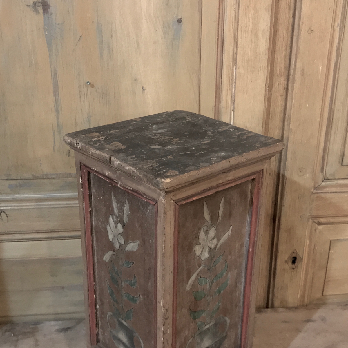 SaleWonderful and rare 19th Century Hand Painted Pedestal, finished on all four sides with original patina.