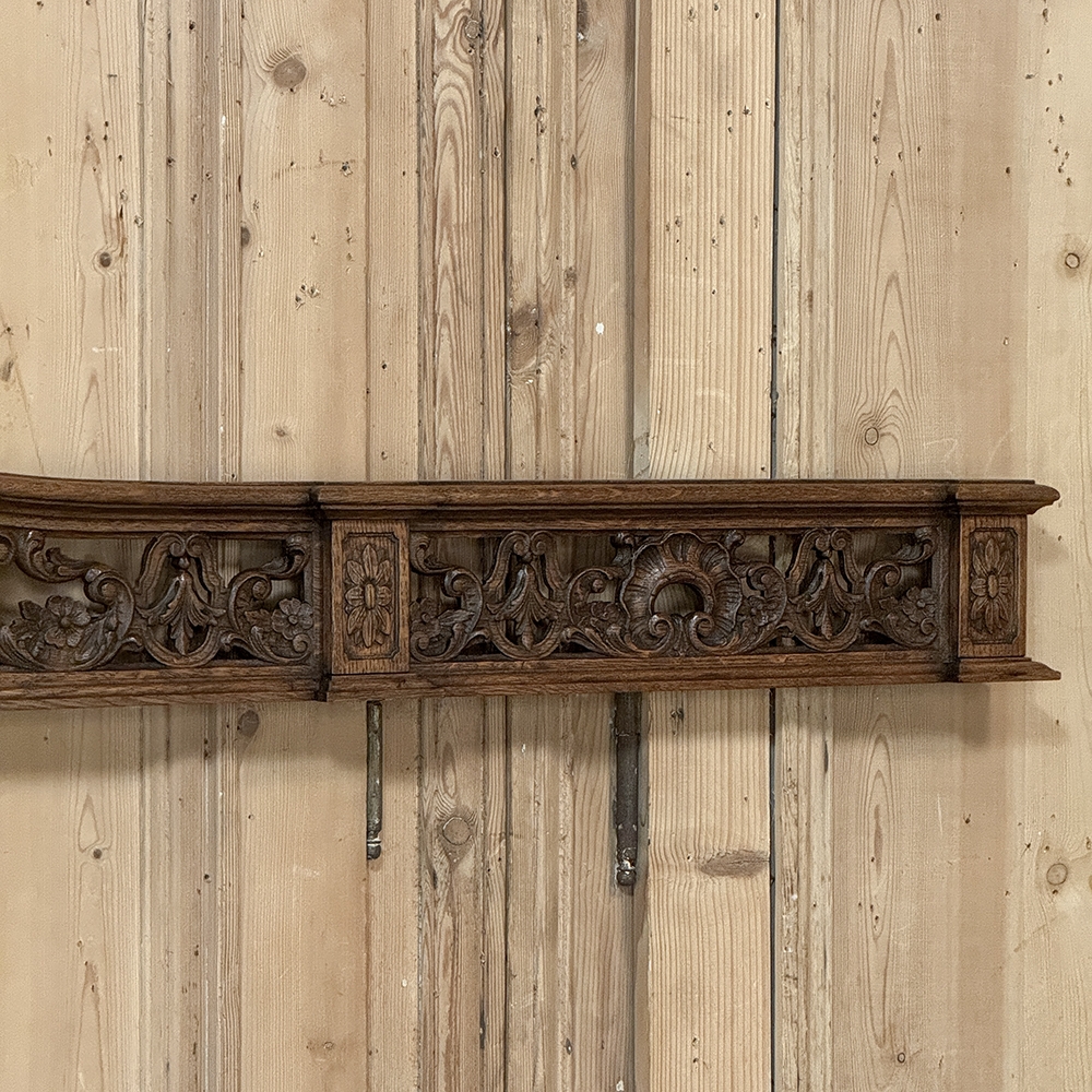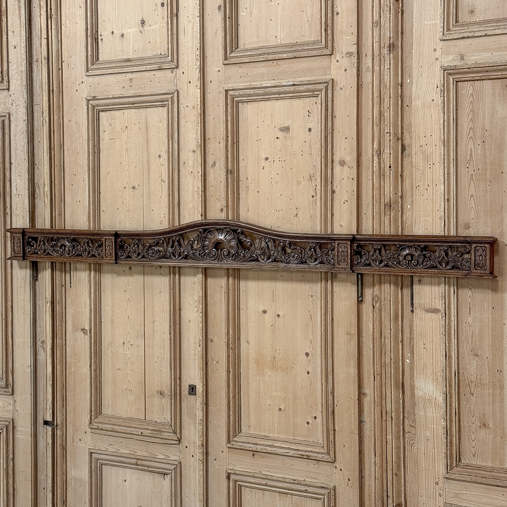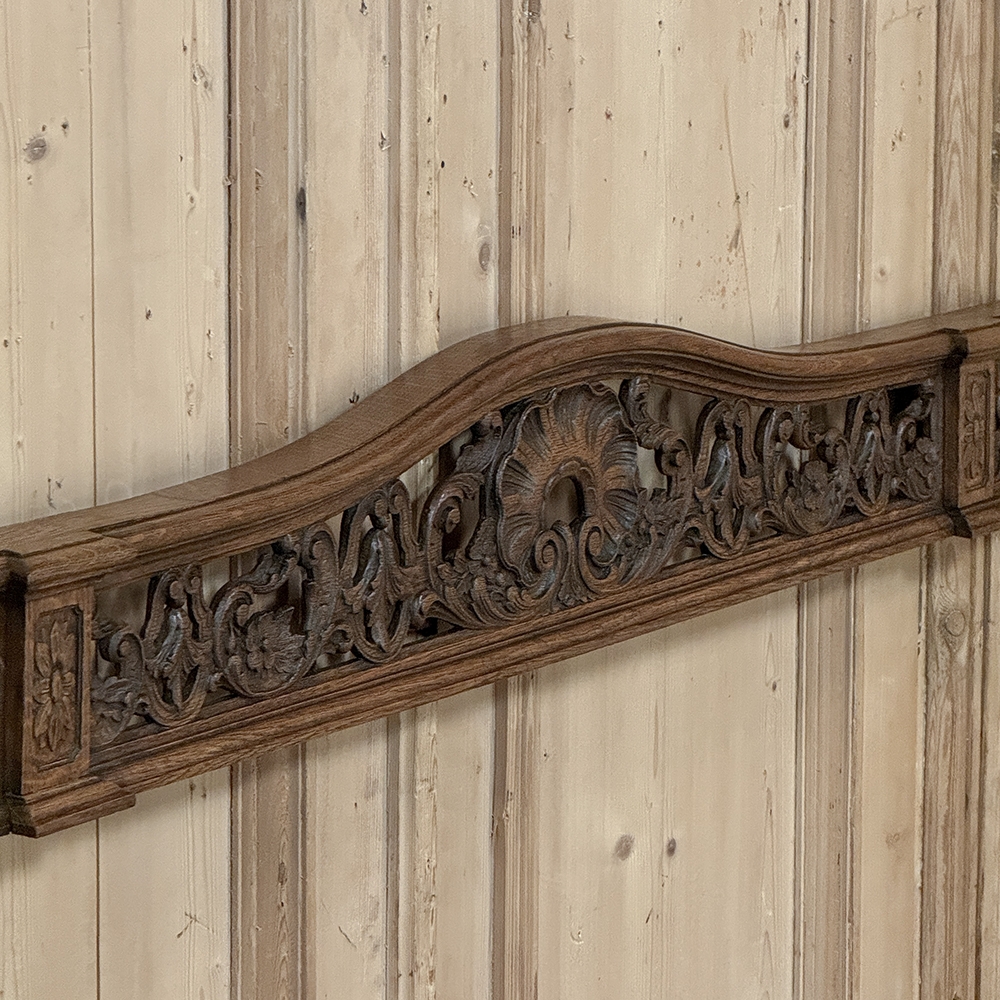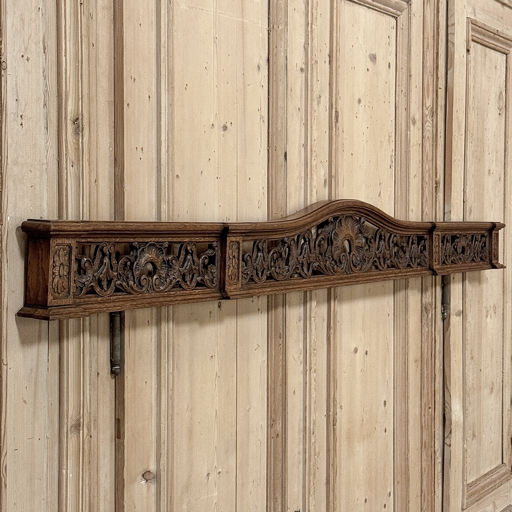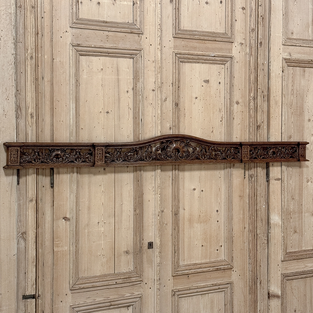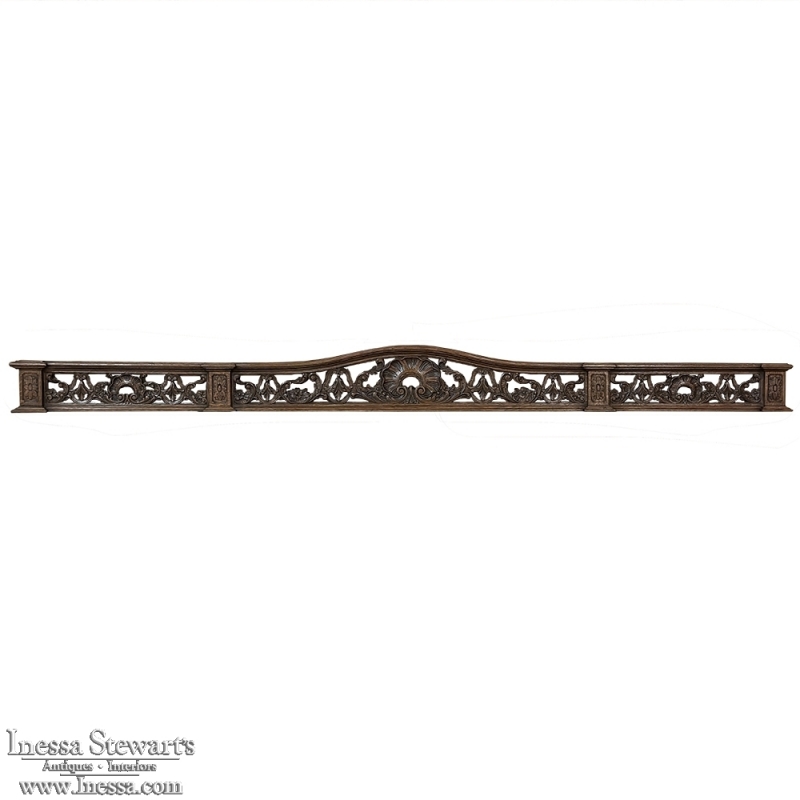 Antique Decorative Carved Panel ~ Trim will make a great accent over a mantel, cased opening, or anywhere a little flair is needed. Beautifully sculpted from solid oak, the motifs represented are scallop shells, floral and foliates, with rosettes on each side. Graceful arched center only adds to the visual allure.
