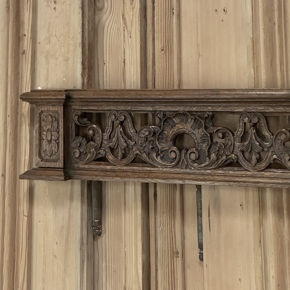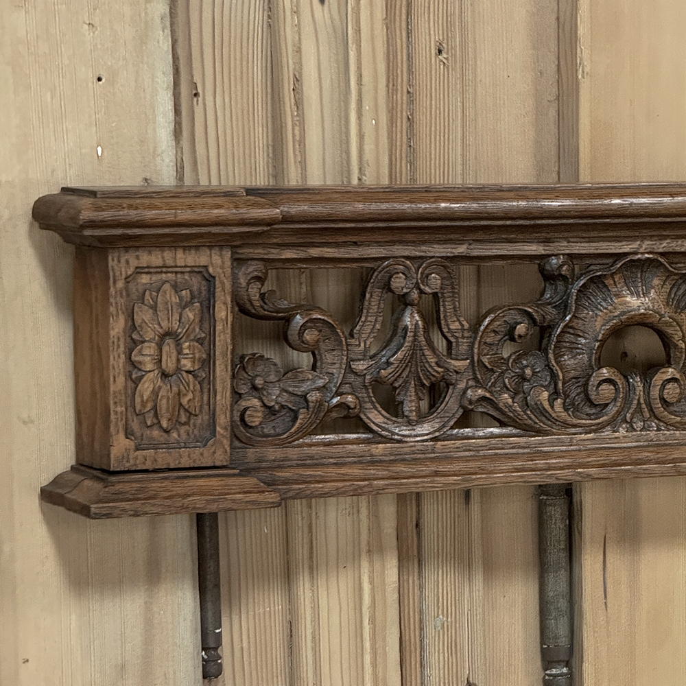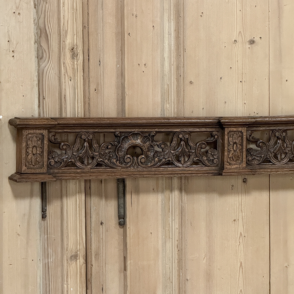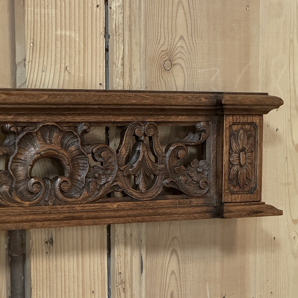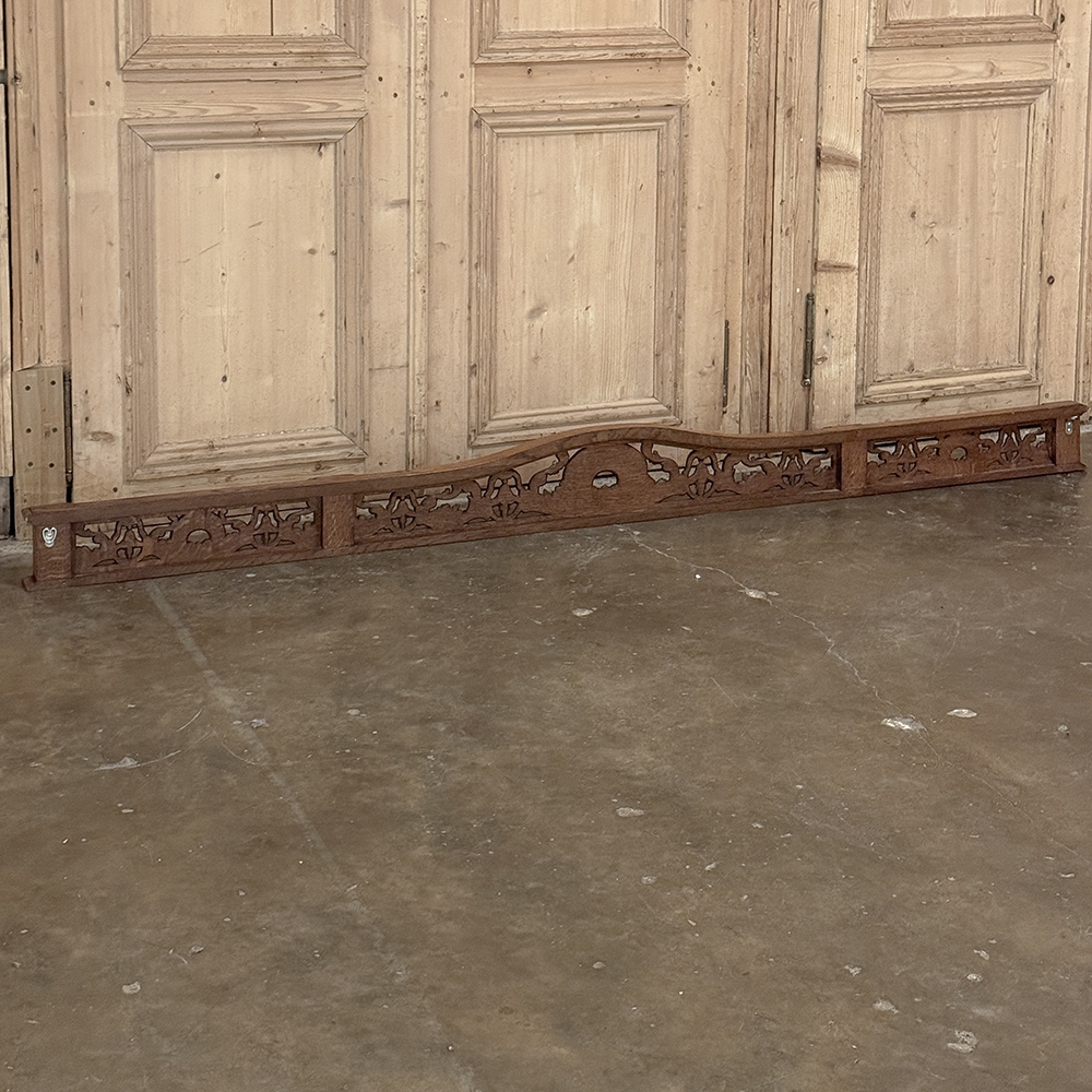 Antique Decorative Carved Panel ~ Trim will make a great accent over a mantel, cased opening, or anywhere a little flair is needed. Beautifully sculpted from solid oak, the motifs represented are scallop shells, floral and foliates, with rosettes on each side. Graceful arched center only adds to the visual allure.