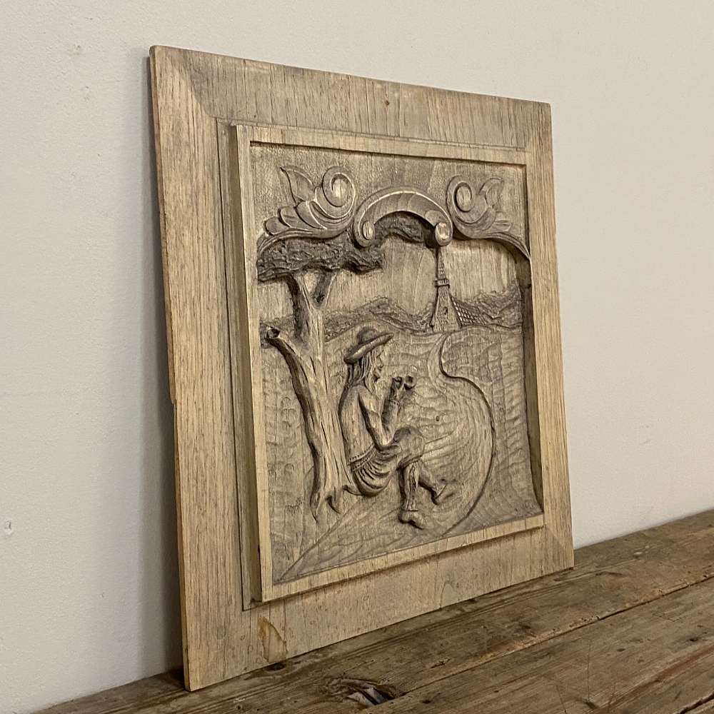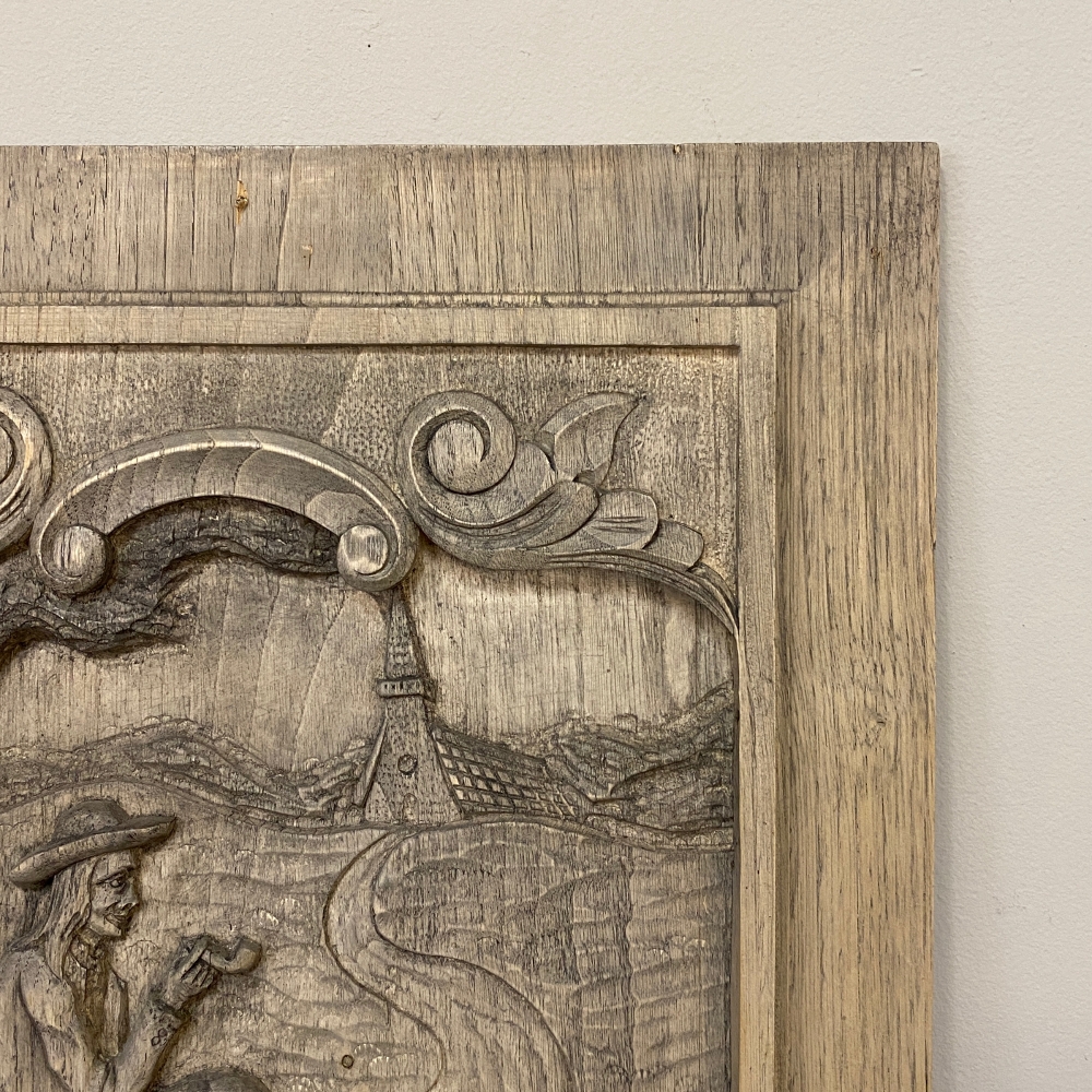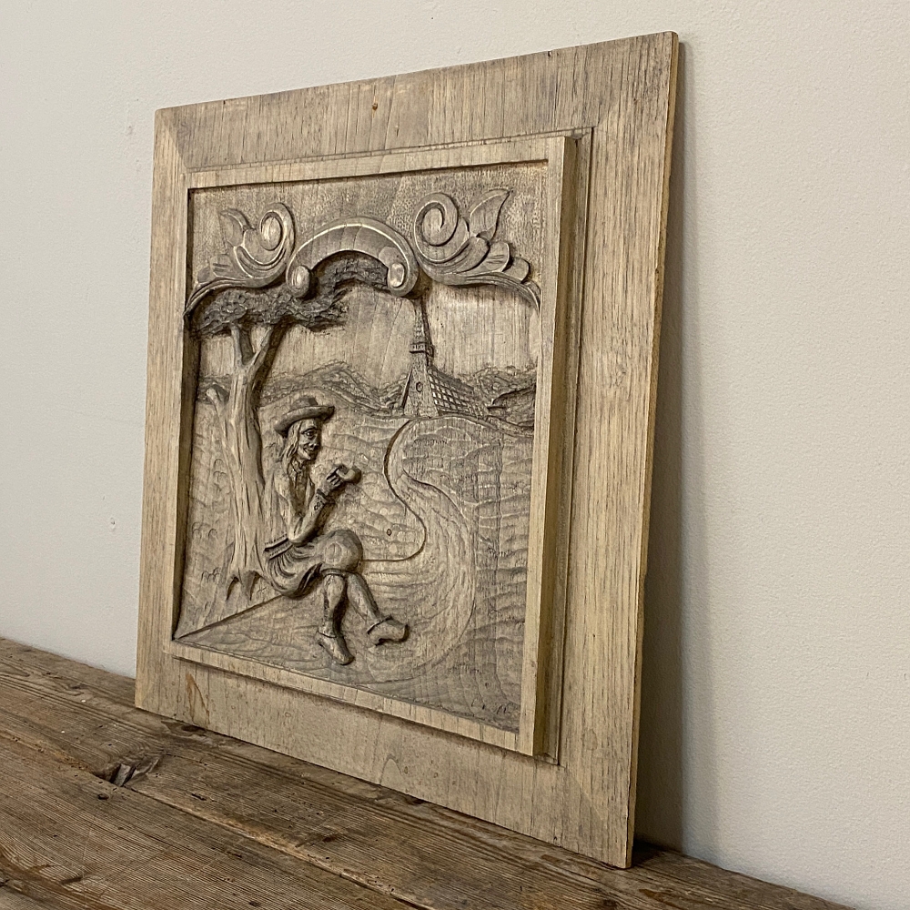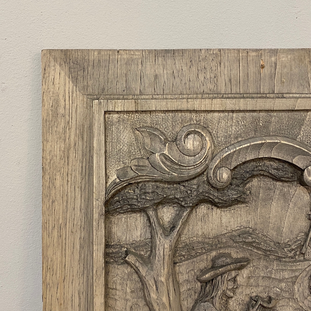 Carved by a talented artisan from Brittany, this Antique French Carved Wood Panel was meant for decorative purposes, and usually depicts family members. The wonderful patina is evident in the unfinished wood, making this a wonderful item to display in your Country French or casual decor.
