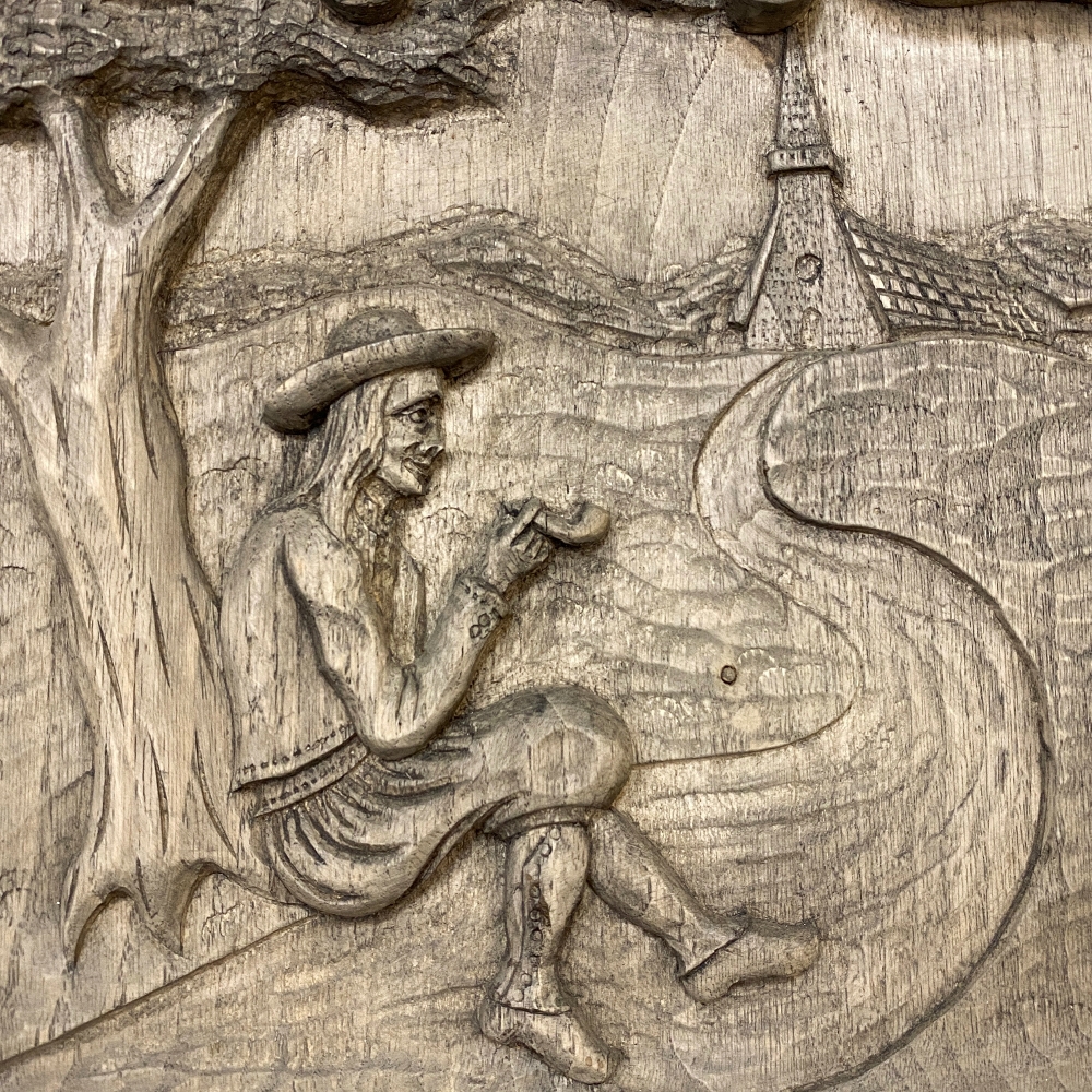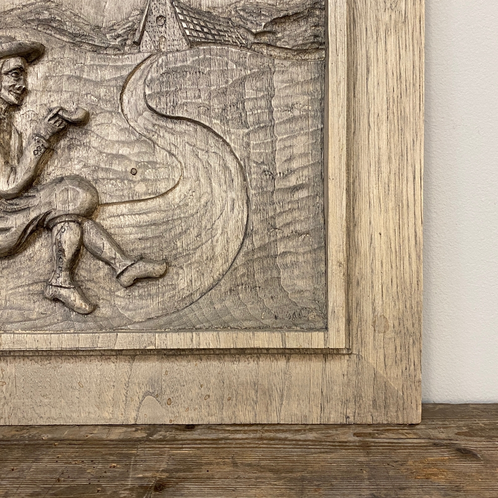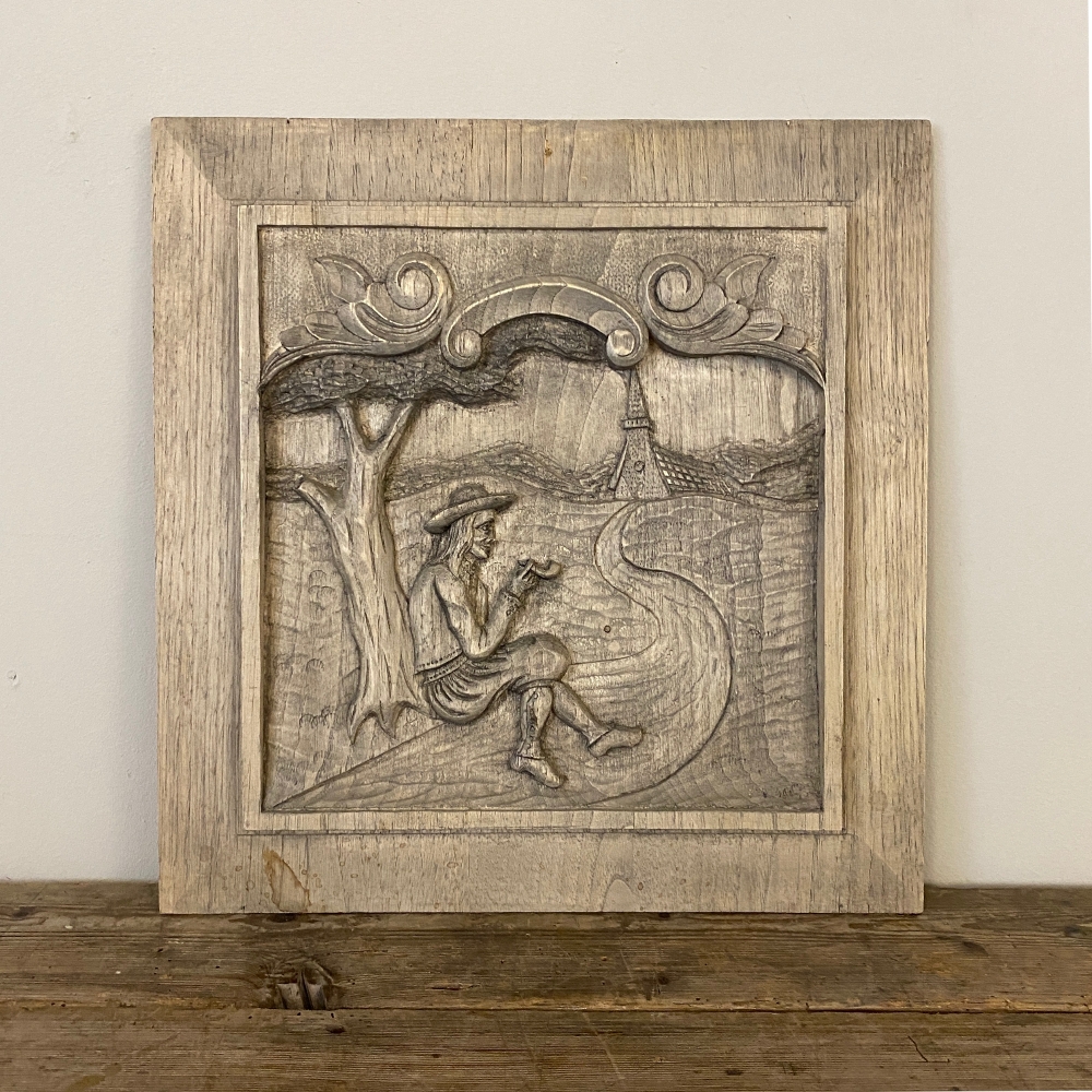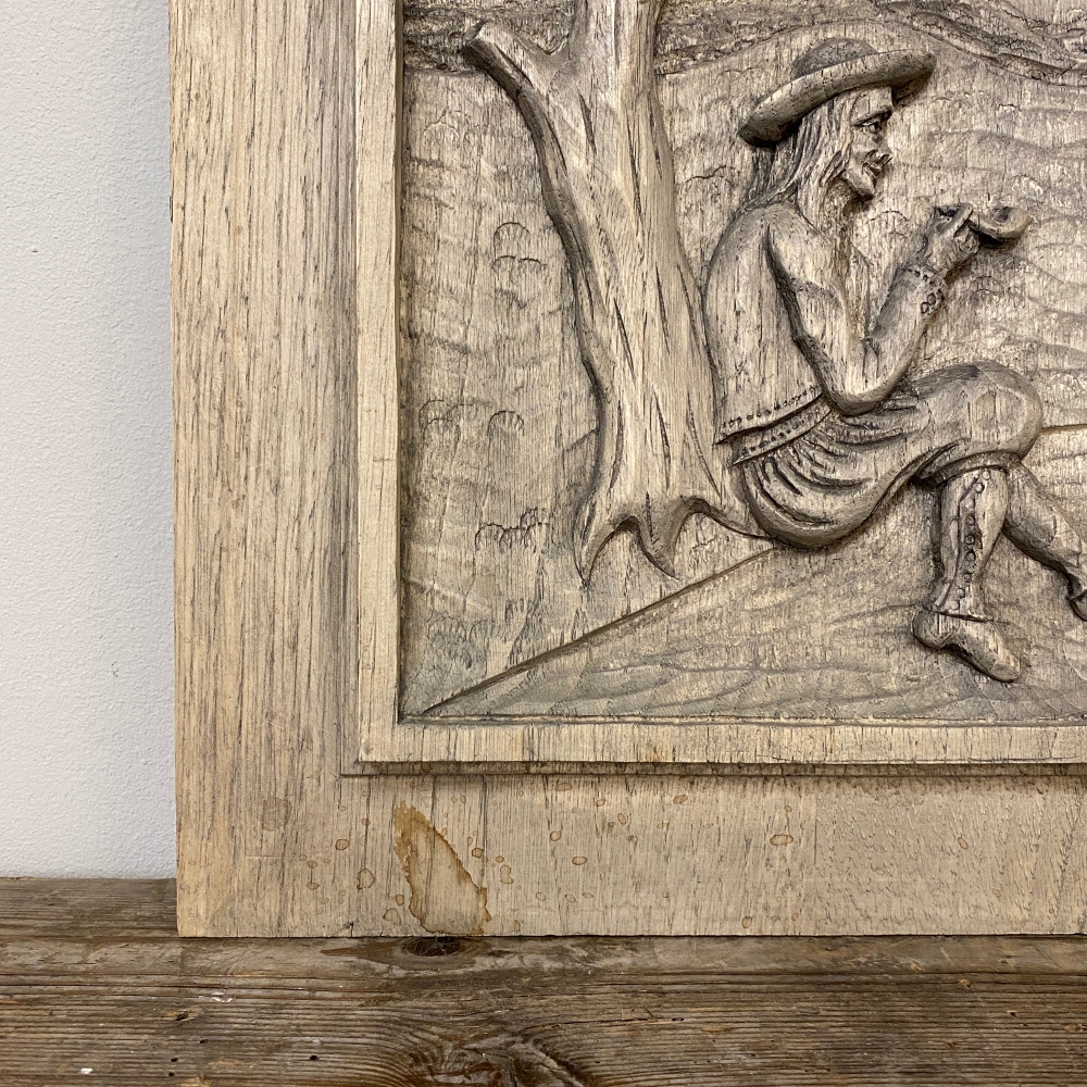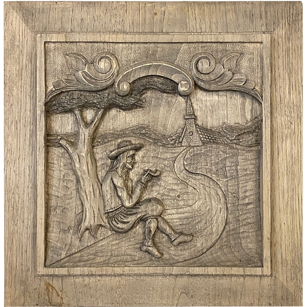 Carved by a talented artisan from Brittany, this Antique French Carved Wood Panel was meant for decorative purposes, and usually depicts family members. The wonderful patina is evident in the unfinished wood, making this a wonderful item to display in your Country French or casual decor.