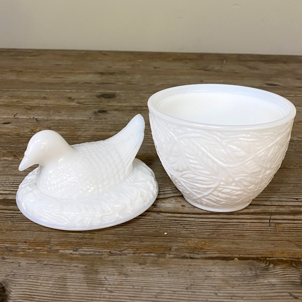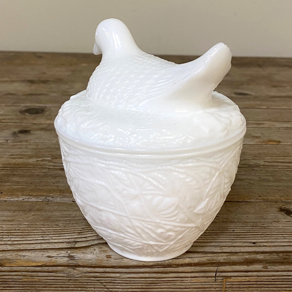 Antique French White Opaline 'Birdbox' Sugar Cellar by Portieux Vallerysthal