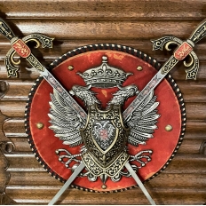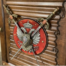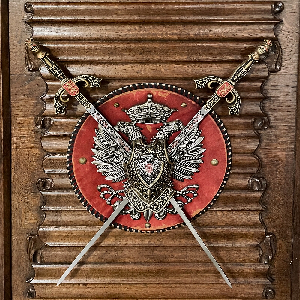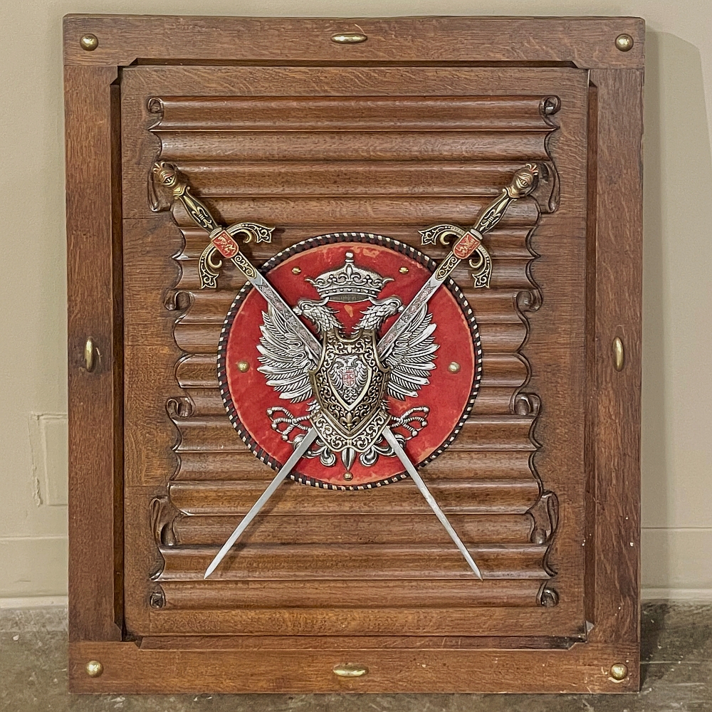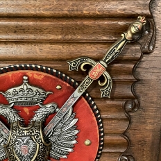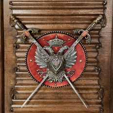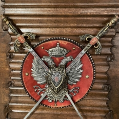 Antique Gothic Display Plaque with Swords & Double-Headed Eagle