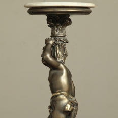 Antique Italian Giltwood Pedestal with Carved Cherub & Marble Top