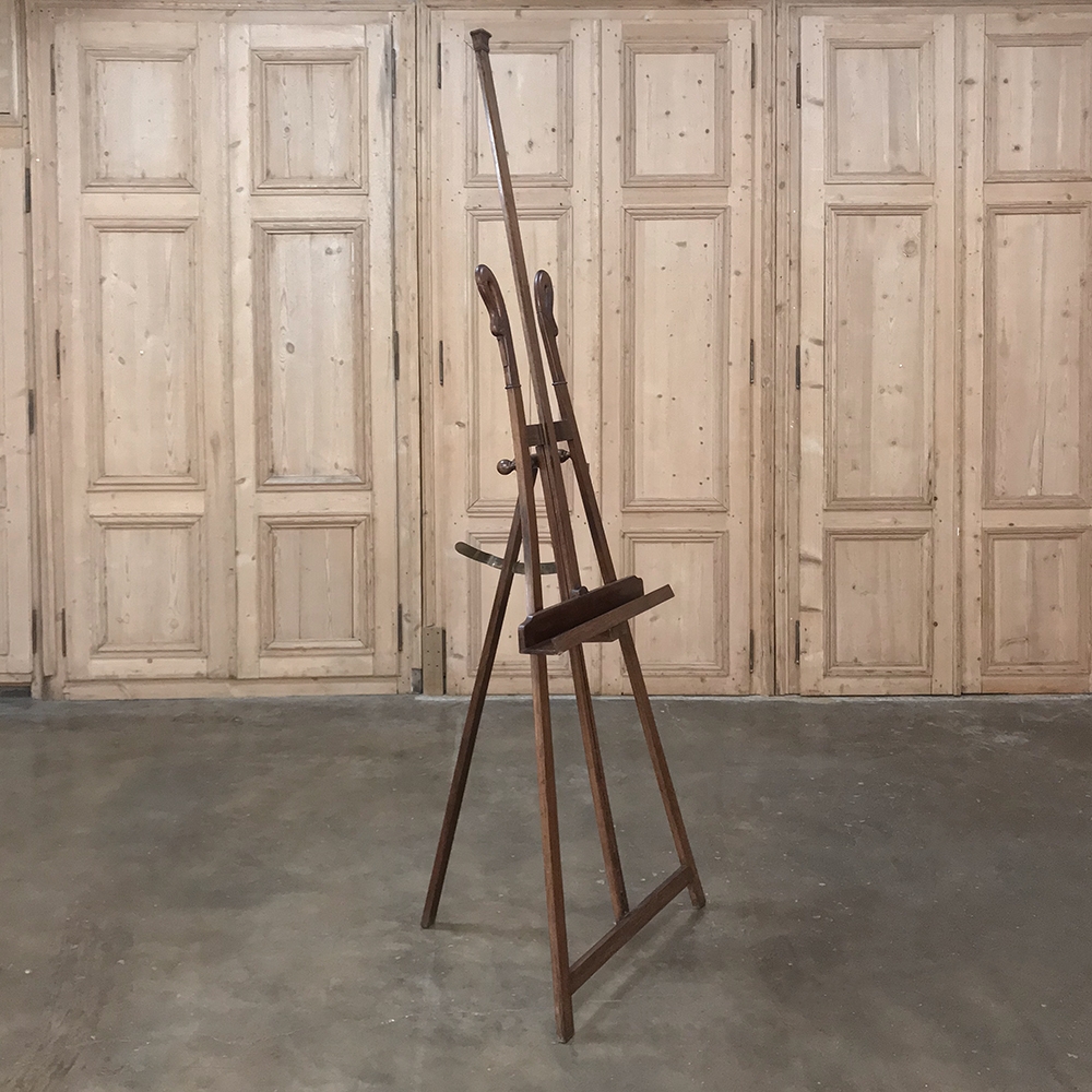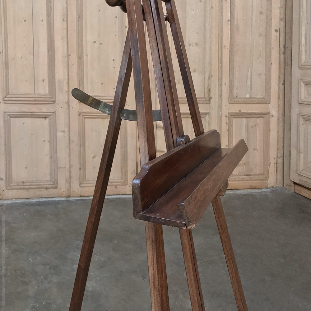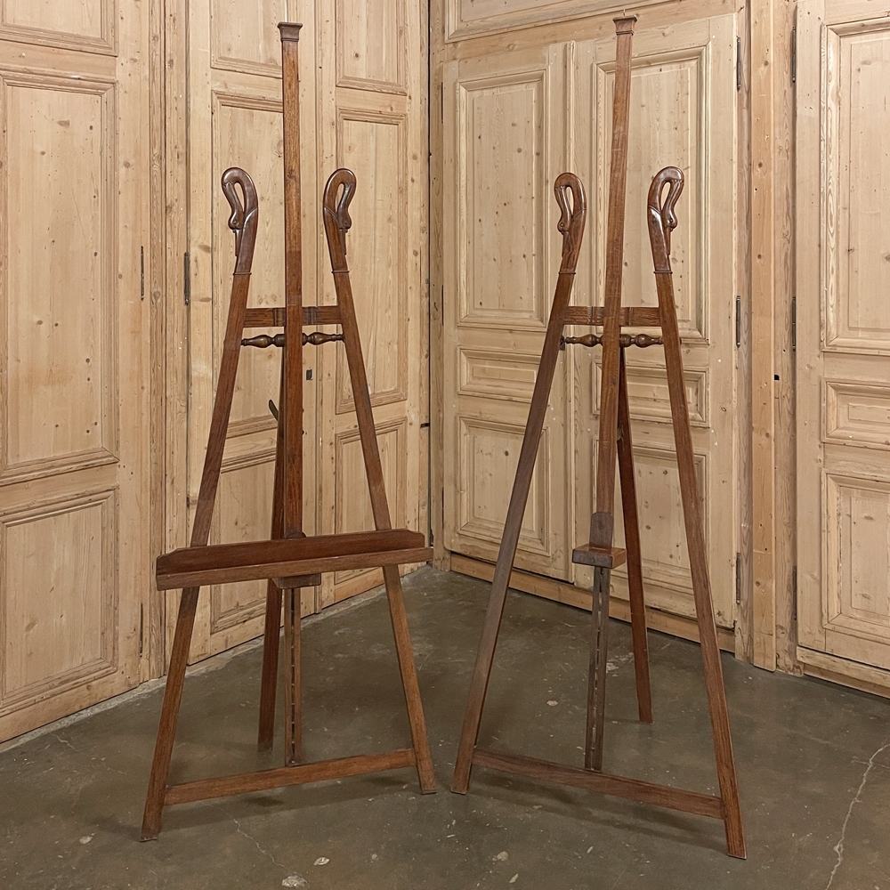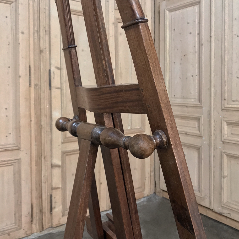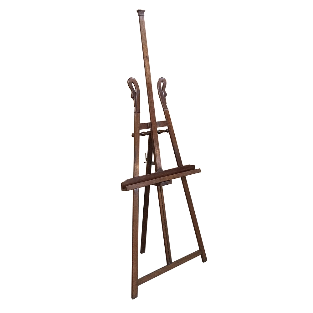 Antique Mahogany Empire Style Display Easel is ideal for open floor plans allowing one to display a piece of art anywhere in the room when wall space is at a premium! Hand-crafted from imported mahogany, it features swans' heads as detailing, and the platform is adjustable to accommodate a range of painting sizes.