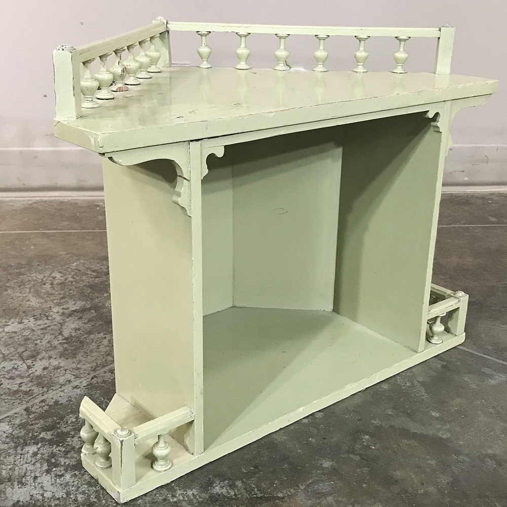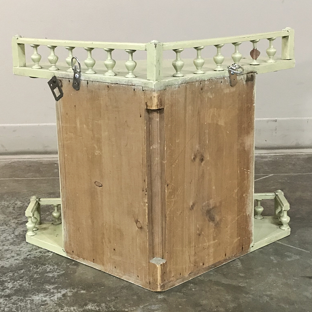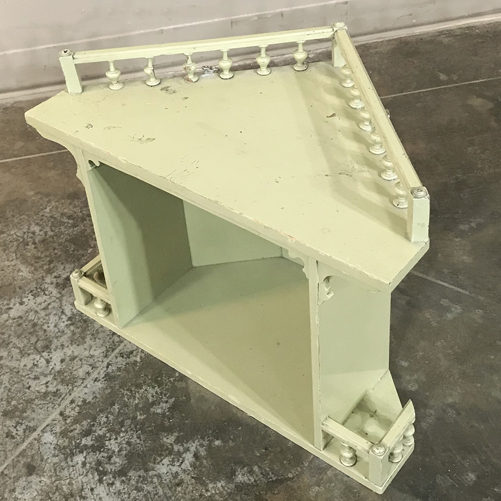 SaleAntique Painted Corner Wall Shelf is a delightful example of Belle Epoque charm featuring a superlative architecture and its original hand-painted finish. Exceptionally efficient, it was designed to hang in the corner, an otherwise unused space, and with a niche created plus a railed top, creates an excellent display venue!