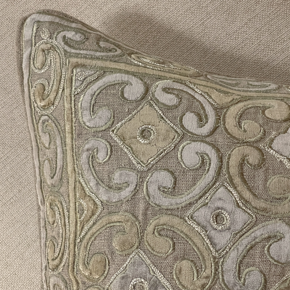 Belgian Hand-Made Linen and Velvet Throw Pillow
