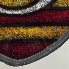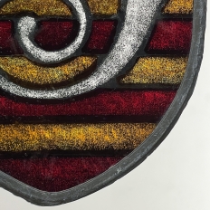 Decorative Stained Glass Medallion is an ingenious preservation effort to reconstitute fragments of stained glass works that have succumbed to the ravages of time so that they can be enjoyed for many more decades to come. Use to brighten up a window, hang on a wall or door, or even as a Christmas ornament!