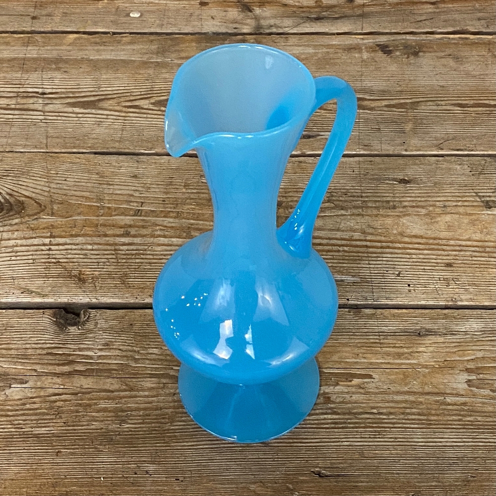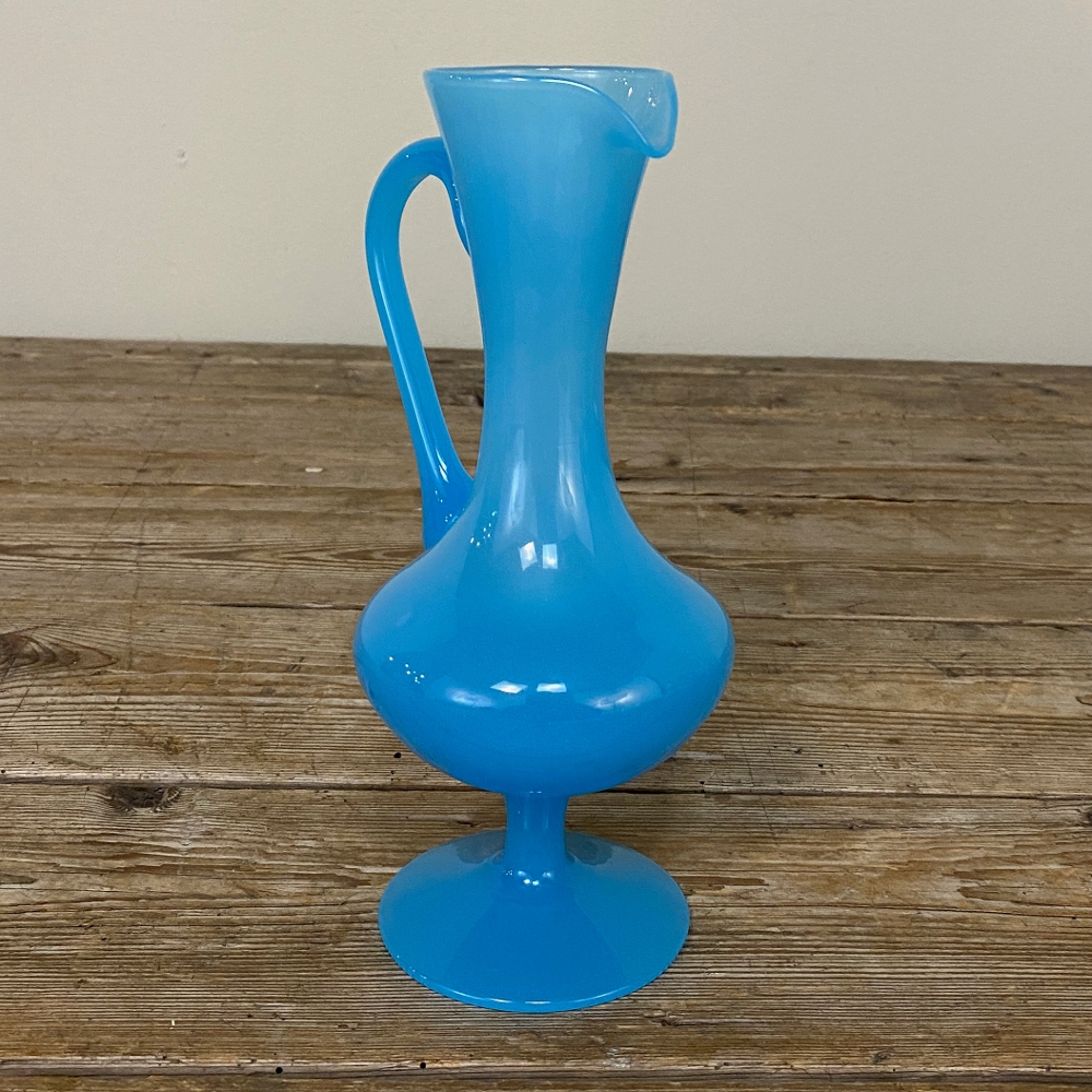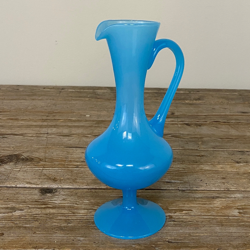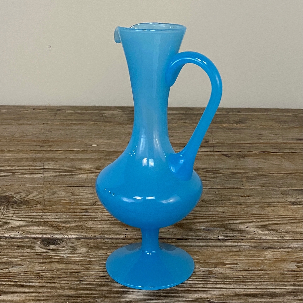 Mid-Century Hand-Blown French Blue Opaline Glass Ewer