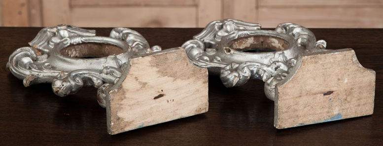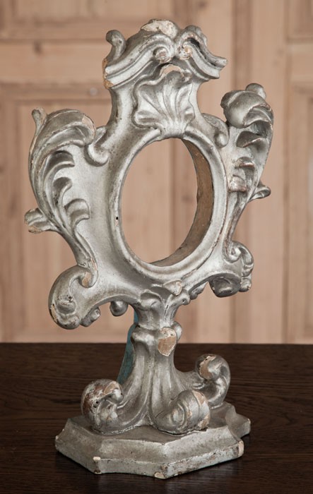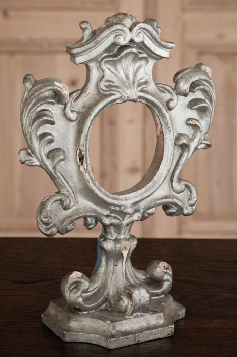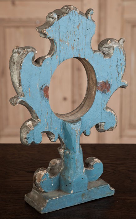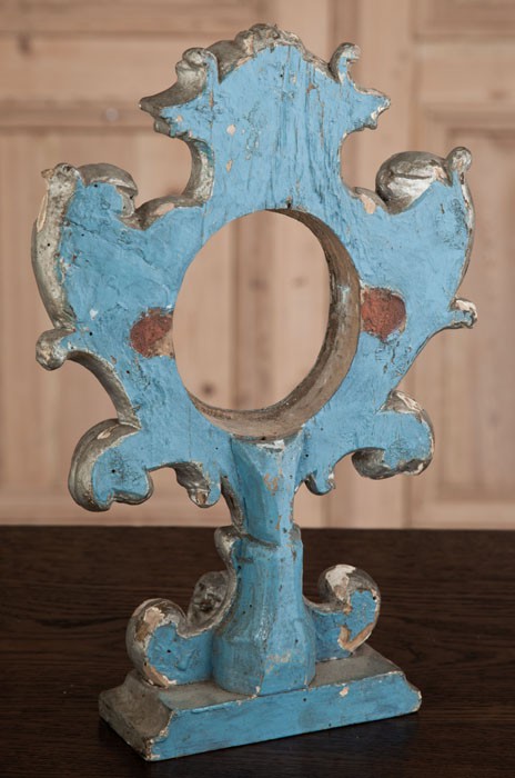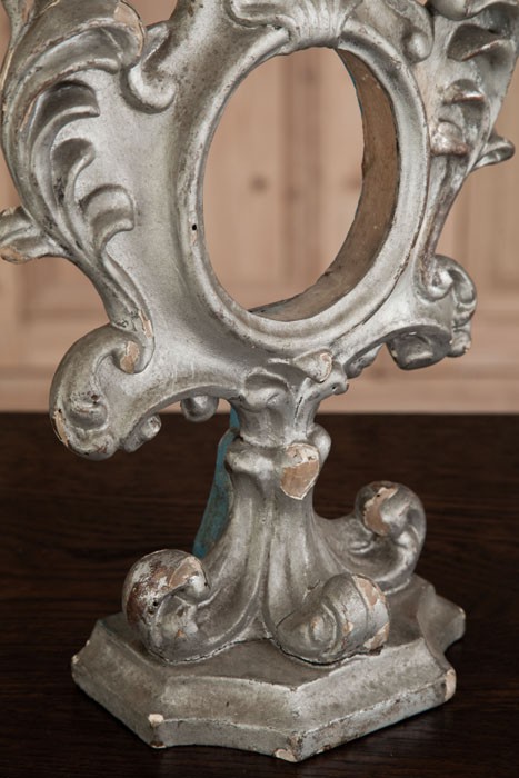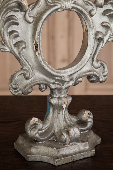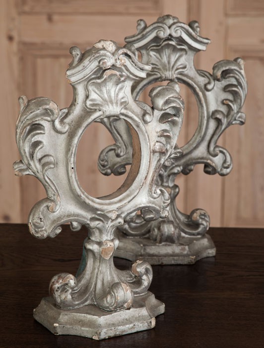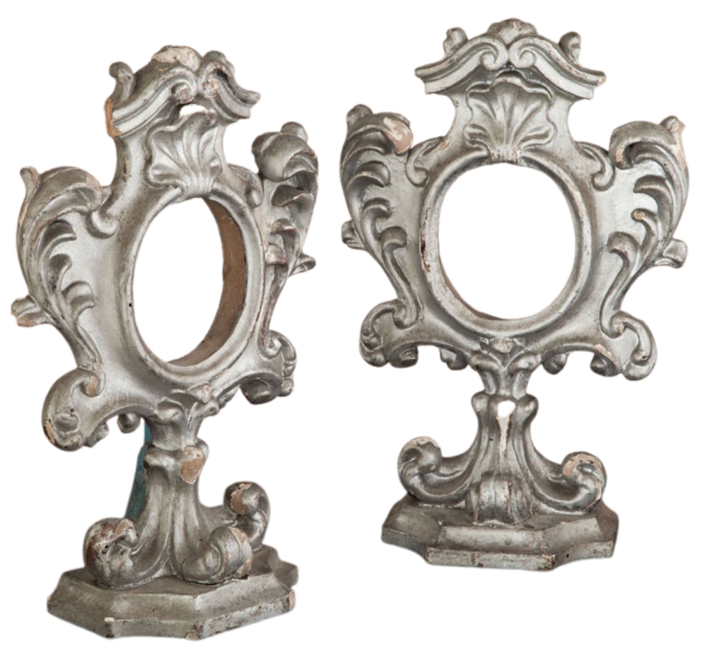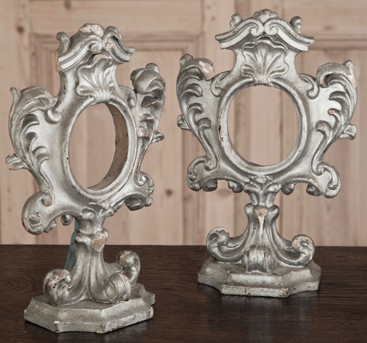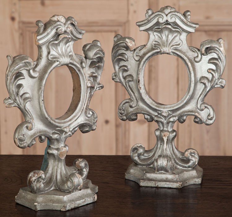 This elegant pair of Silver-leaf monstrances that once housed relics for a Tuscan cathedral, were sculpted by a devoted Italian artisan from solid walnut, then overlaid with silver leaf for a stunning effect. Rare to find from this era in this condition, they will make a stunning decorative accent to any room.