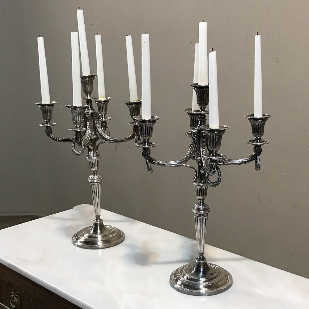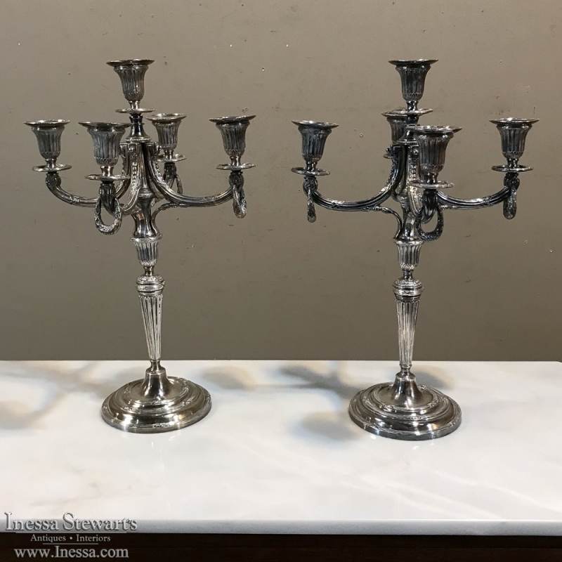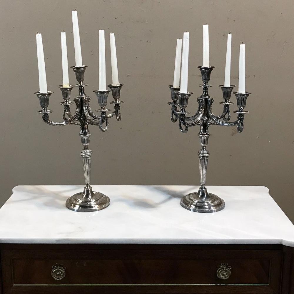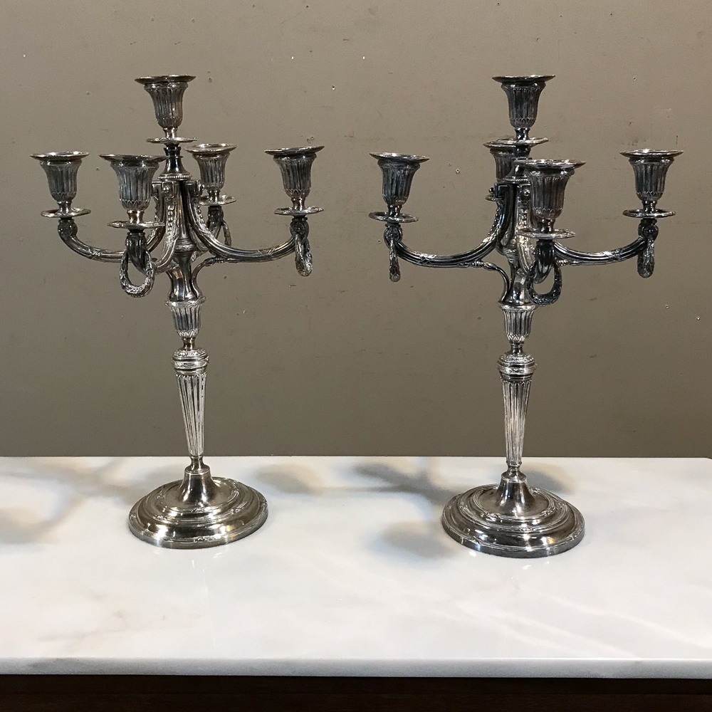 SalePair 19th Century Silver Plate Brass Candlesticks