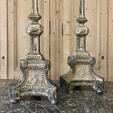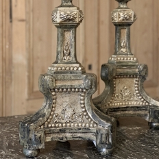 Pair Candlesticks, 18th Century Italian Church Altar Neoclassical Silver Gilt