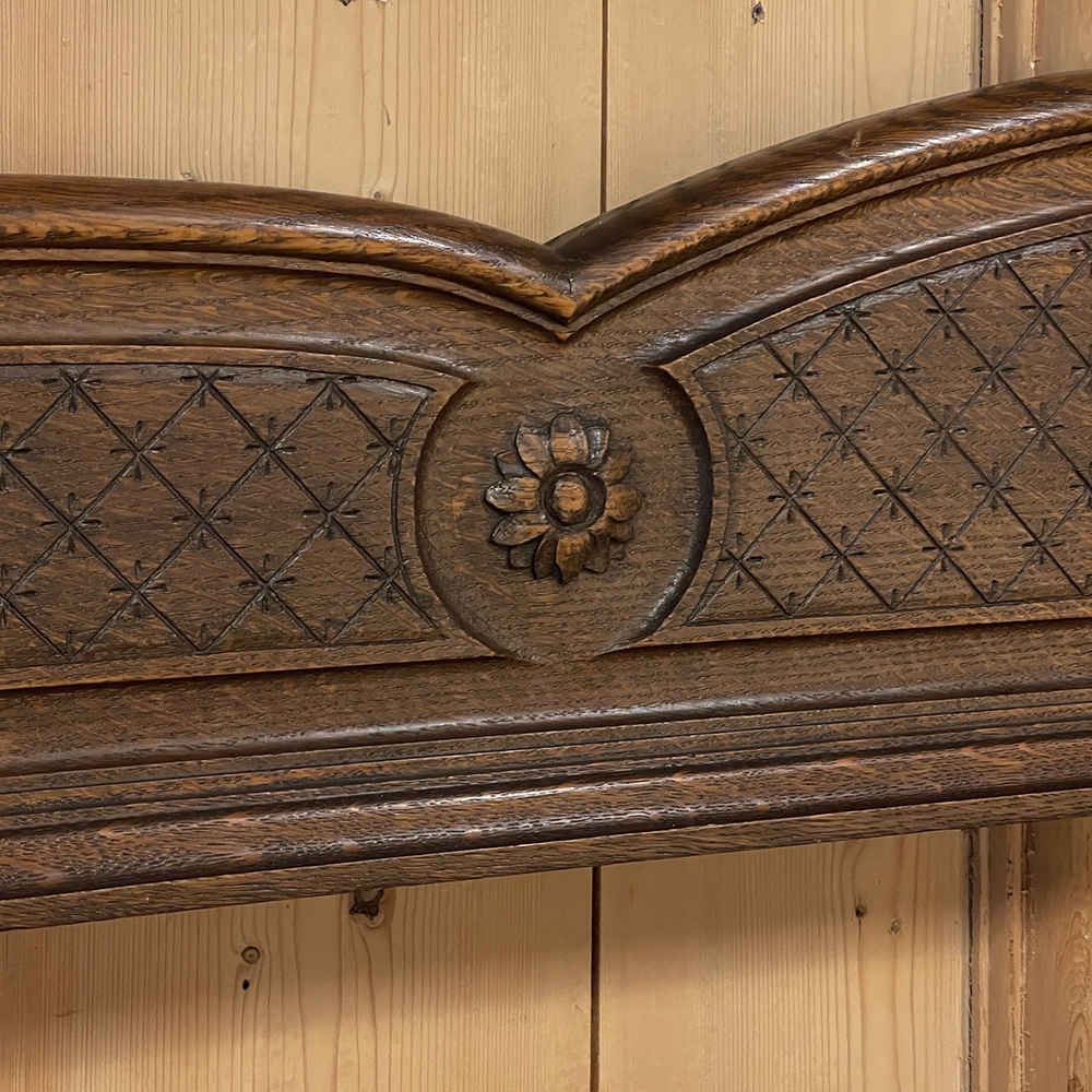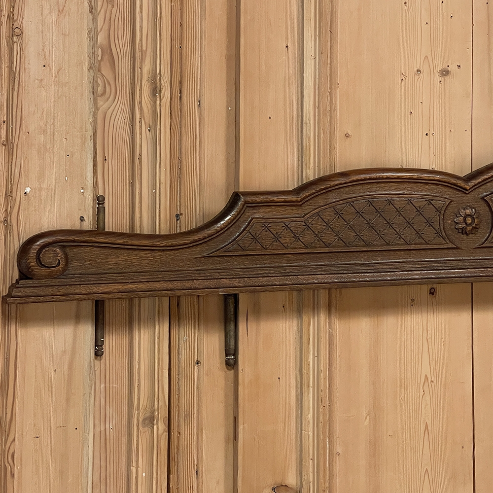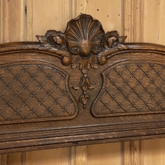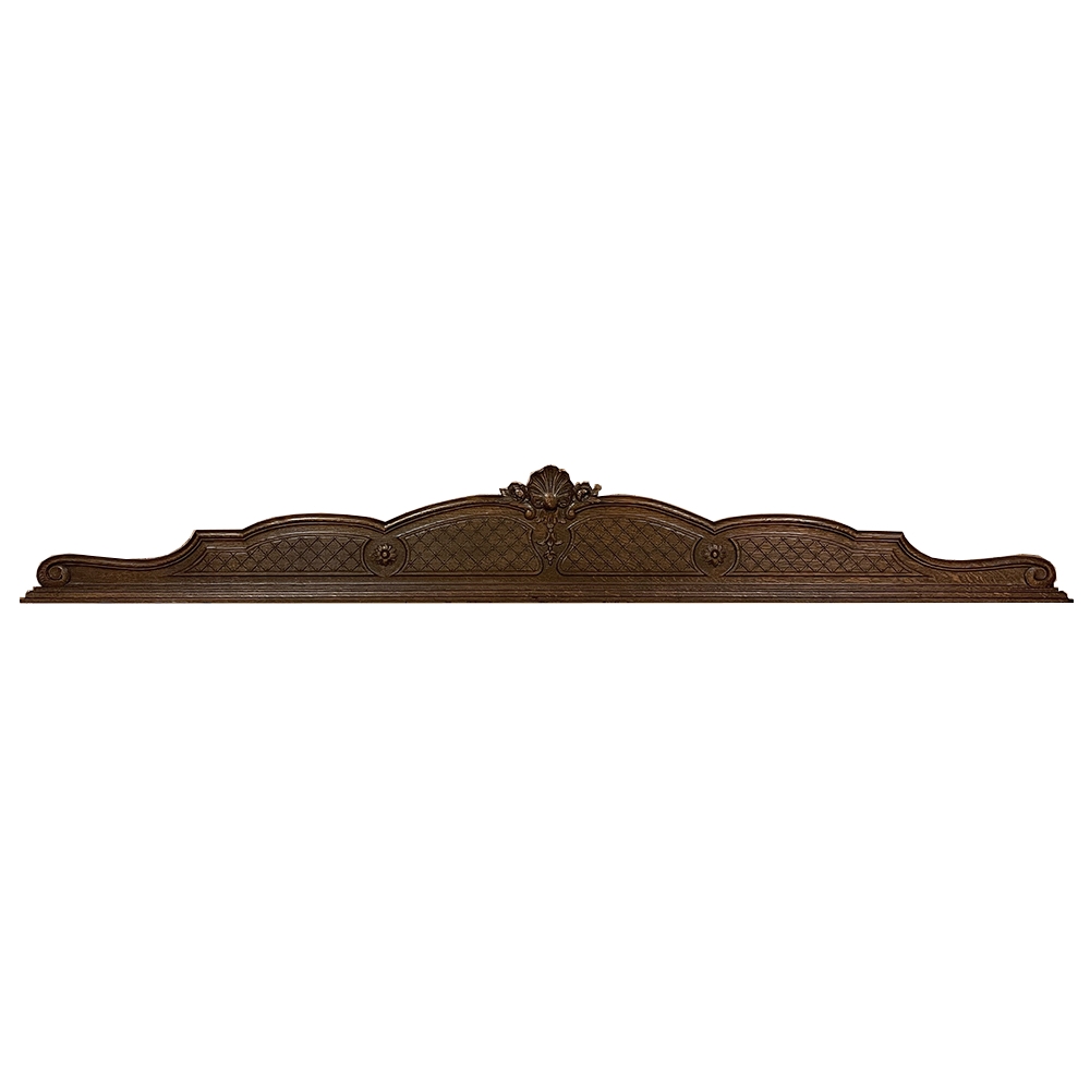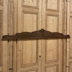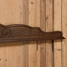 Antique Country French Decorative Trim Panel is a great piece for adding a special accent to a cased opening, over a doorway or window, or even to use as a valence! Carved from a single plank of solid oak, it features stylized shell, floral and foliate motifs and a cross-hatched pattern to provide Old World elegance. Otherwise plain or common openings between room spaces can be enhanced just by attaching it above. One clever designer turned it upside down, mounted it on the ceiling over a window and used it to cover the curtain rod!