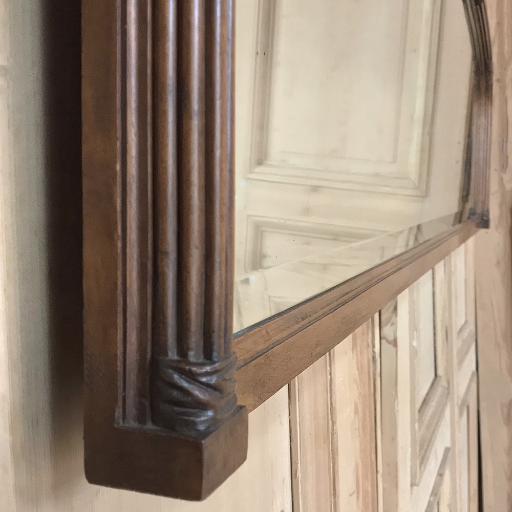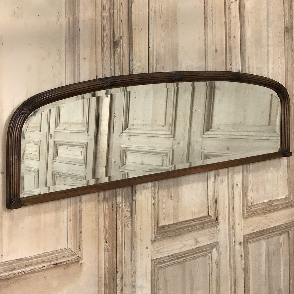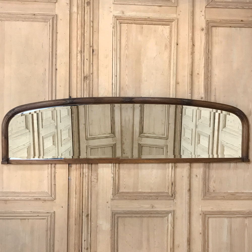 SaleAntique French Louis XVI Backsplash Mirror is the perfect choice for high mantels, over cased openings, or anywhere a little decorative touch is needed for a relatively short space! Hand-carved from fine French walnut.