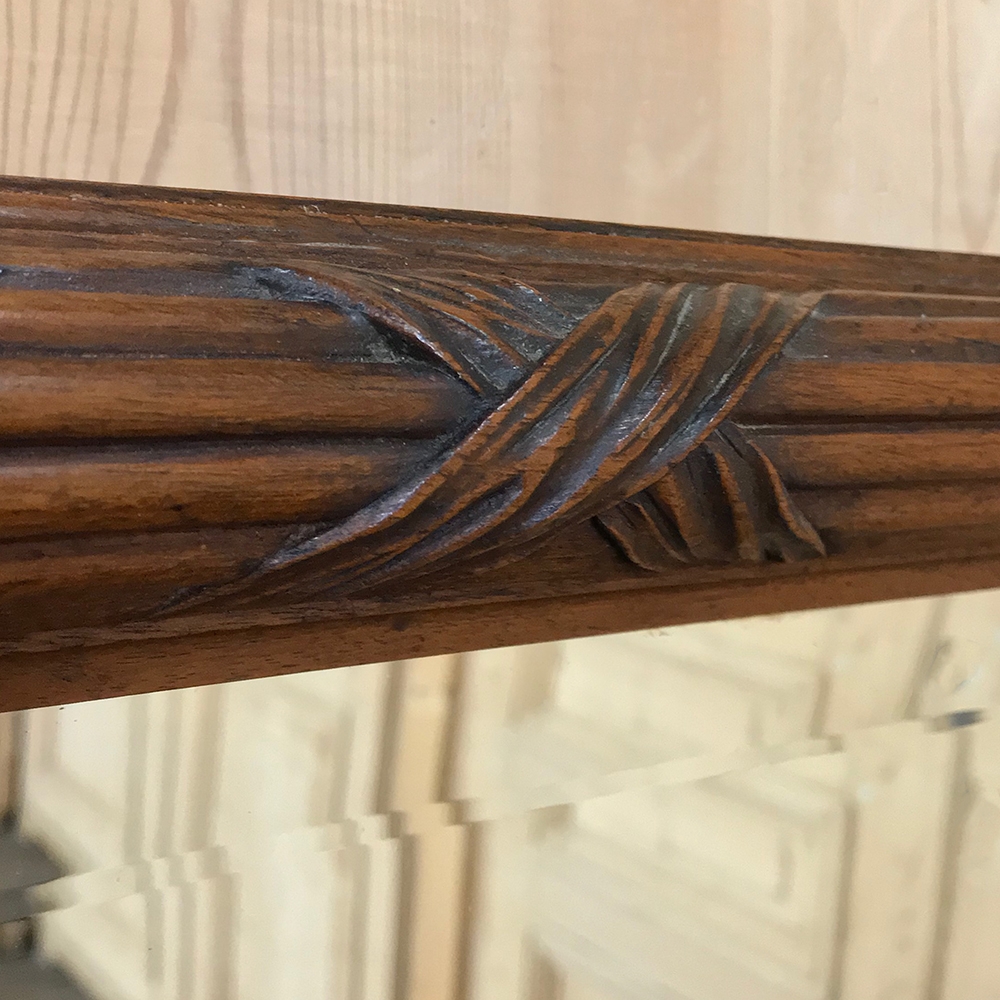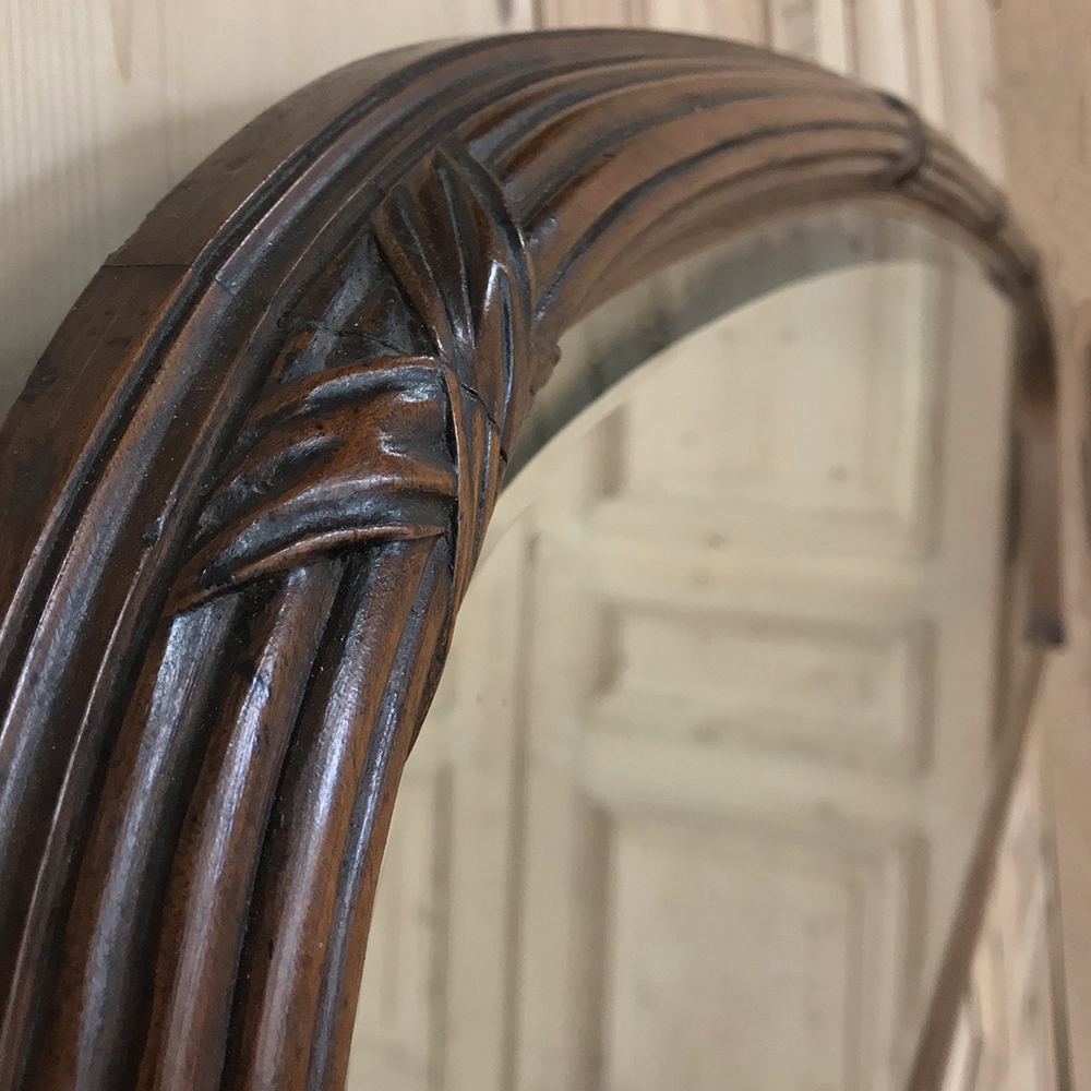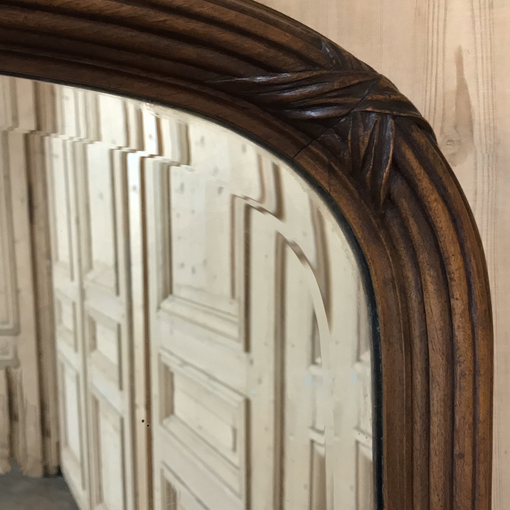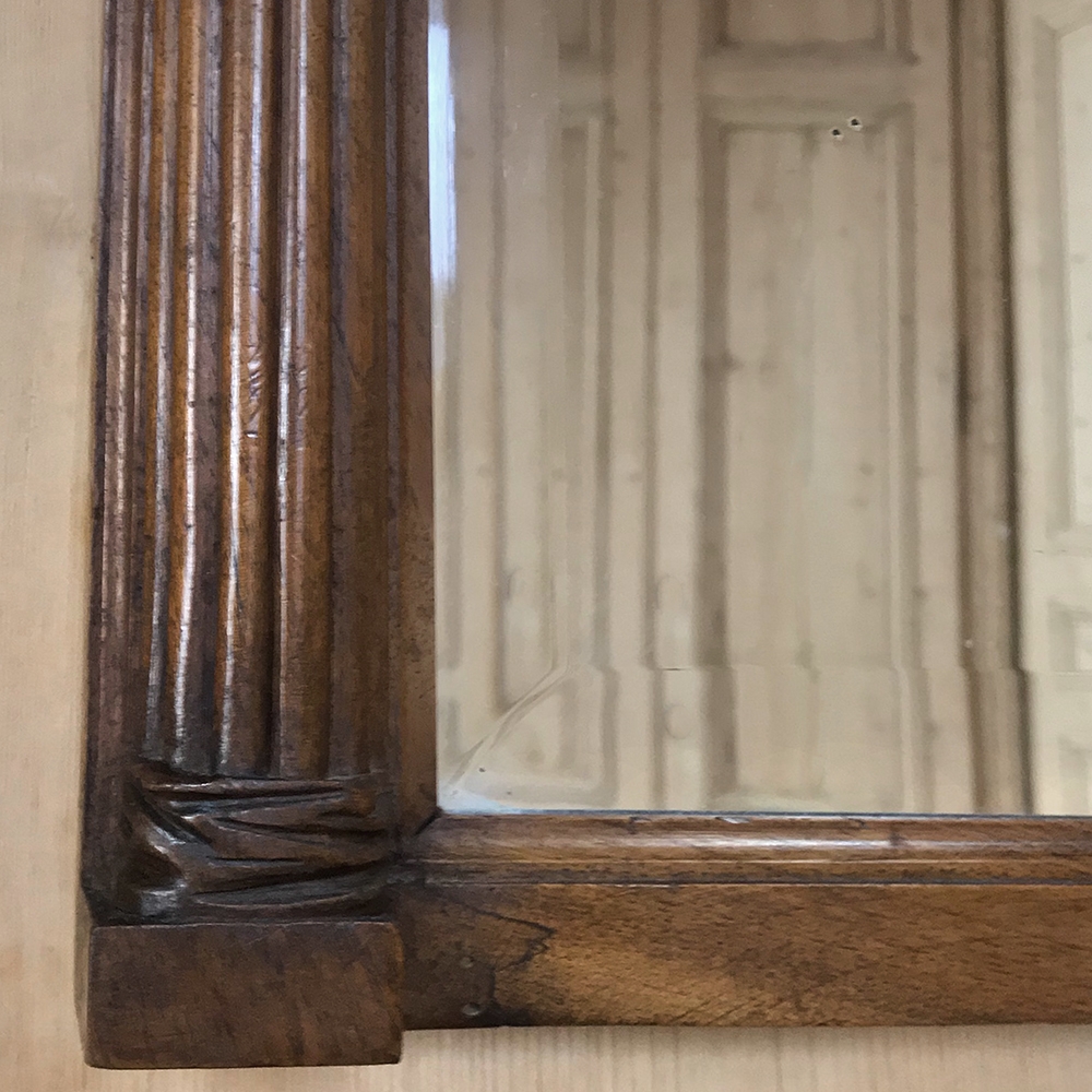 SaleAntique French Louis XVI Backsplash Mirror is the perfect choice for high mantels, over cased openings, or anywhere a little decorative touch is needed for a relatively short space! Hand-carved from fine French walnut.
