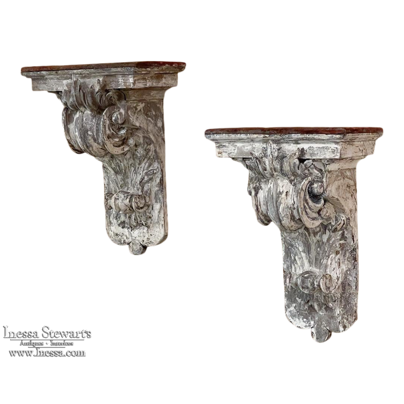 Pair 18th Century French Neoclassical Hand-Carved Painted Wall Sconces ~ Corbels