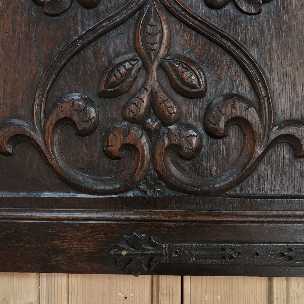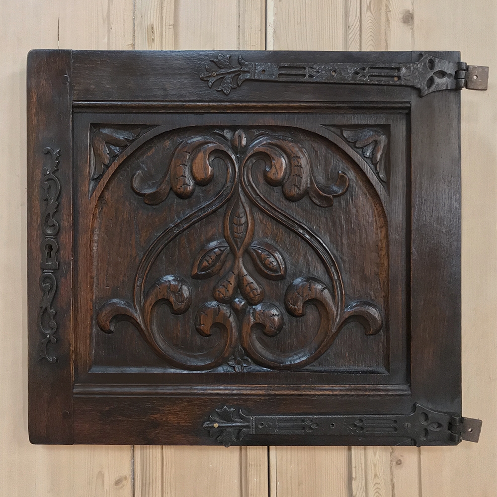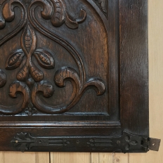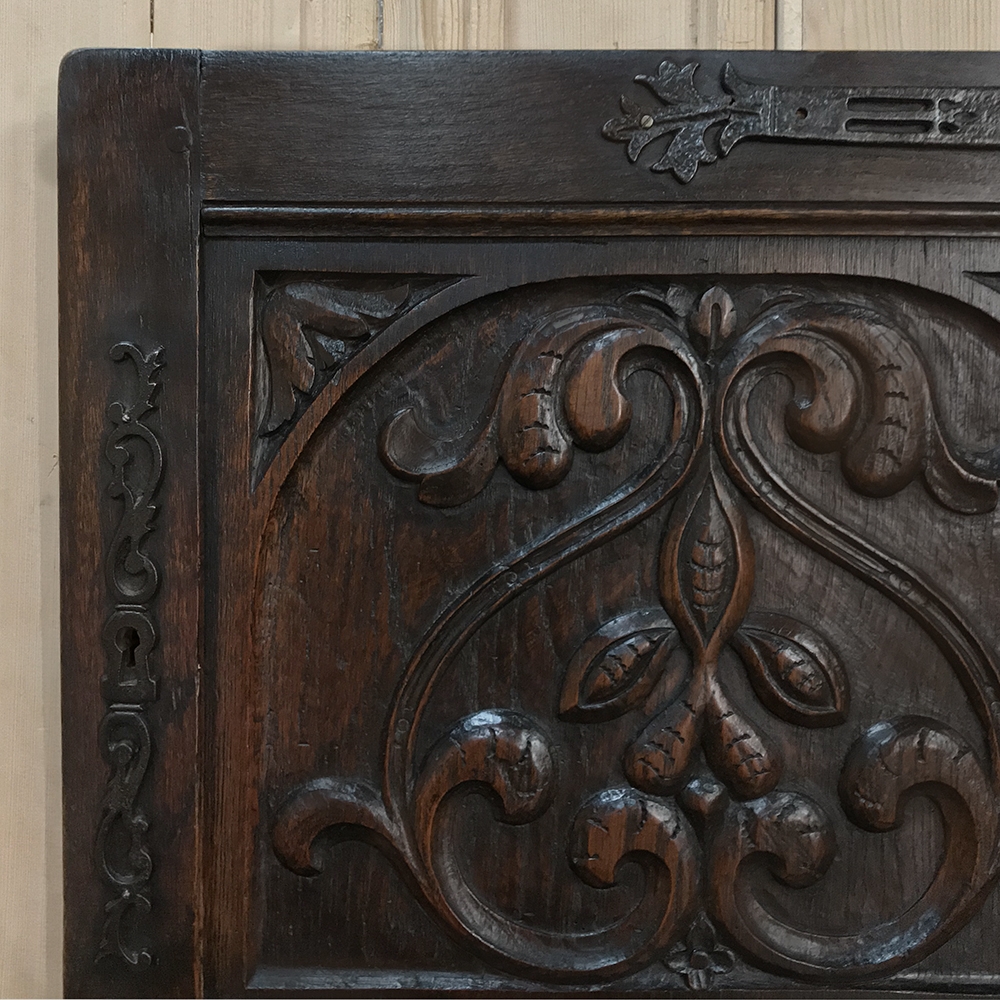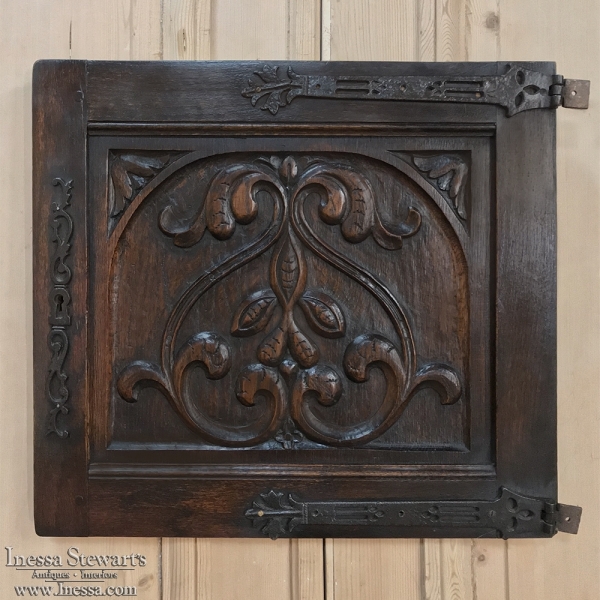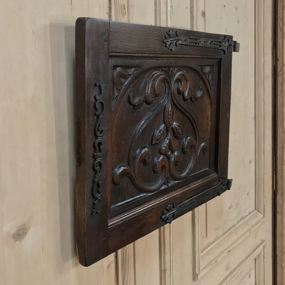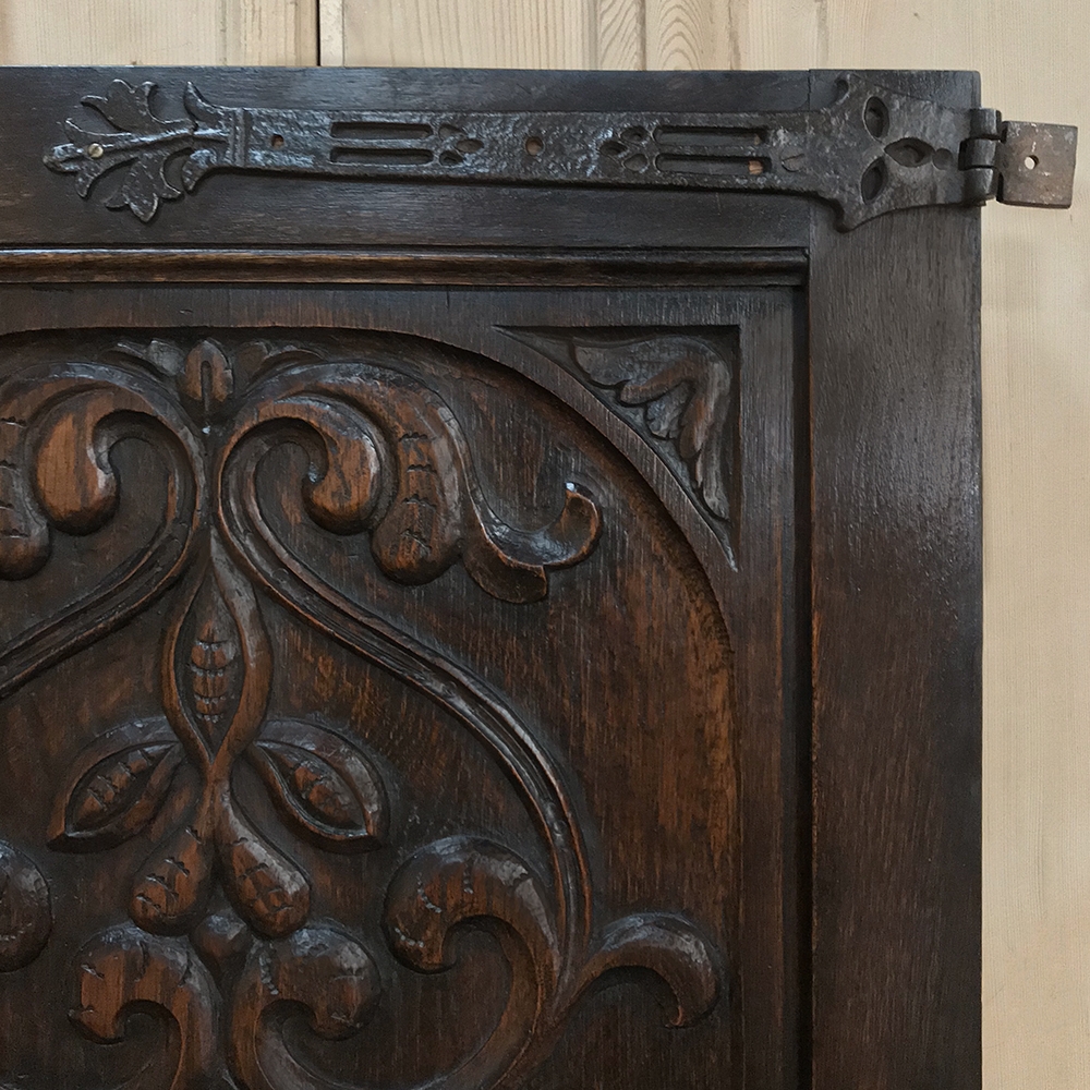 Sale19th Century Carved Renaissance Decorative Door Panel was crafted from solid oak and feature its original fancy iron strap hinges and key guards. Perfect as an accent piece in a special place in the room!