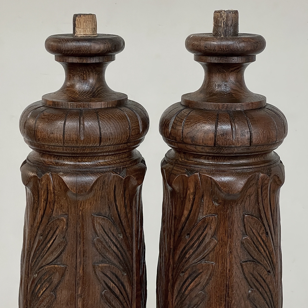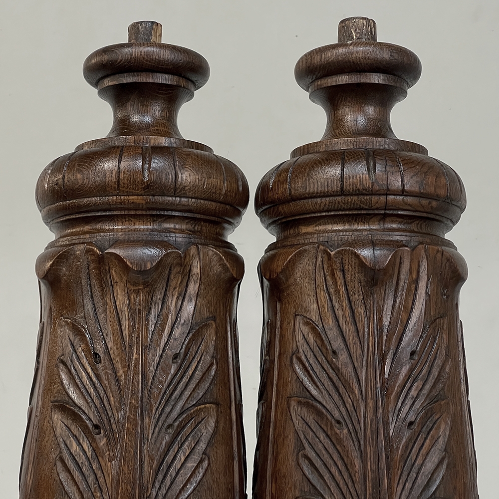 Pair Antique Neoclassical Hand-Carved Oak Pediments