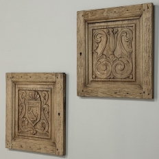 Pair Antique Solid Oak Hand-Carved Decorative Stripped Panels are perfect for adding an Old World rustic touch to your decor! The panels were salvaged from an old cabinet belonging to a family in the maritime trade business, as indicated by the anchor on a crest carved into one of the panels. The remainder of the carved detail consists of shell and foliate designs, with a lotus flower at the center of the companion panel, perhaps signifying trade with what was then called "The Orient". Hand-crafted and carved from solid oak to last for centuries, each has been professionally stripped using our proprietary process that retains the natural beauty and patina of the old-growth wood.