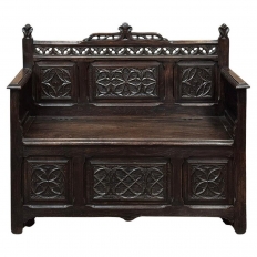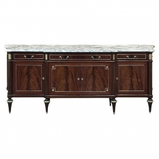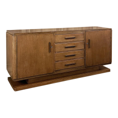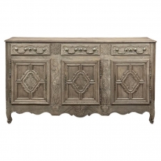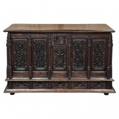 19th Century Country French Walnut Buffet a Glissant is a uniquely French design, with a recessed top cabinet whose side doors slide outwards for access, hence the name. The two center upper doors, each carved from a single piece of luxurious French walnut, are exquisitely arched and carved with Grecian vases with floral and foliate arrangements,...