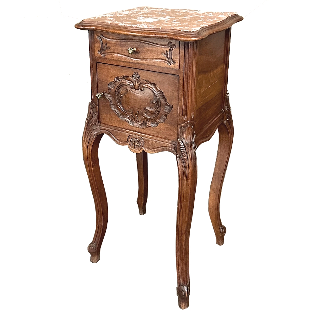 Antique French Louis XV Walnut Marble Top Nightstand ~ End Table