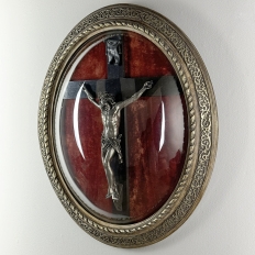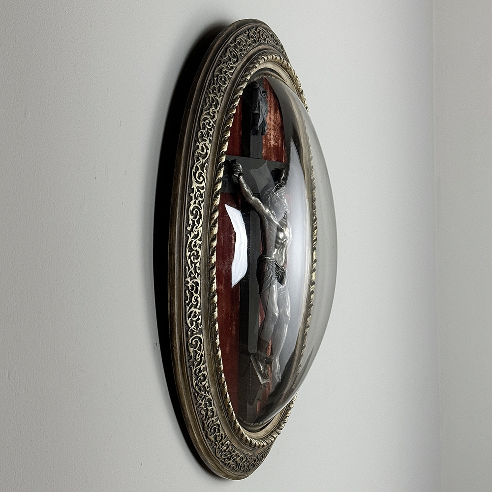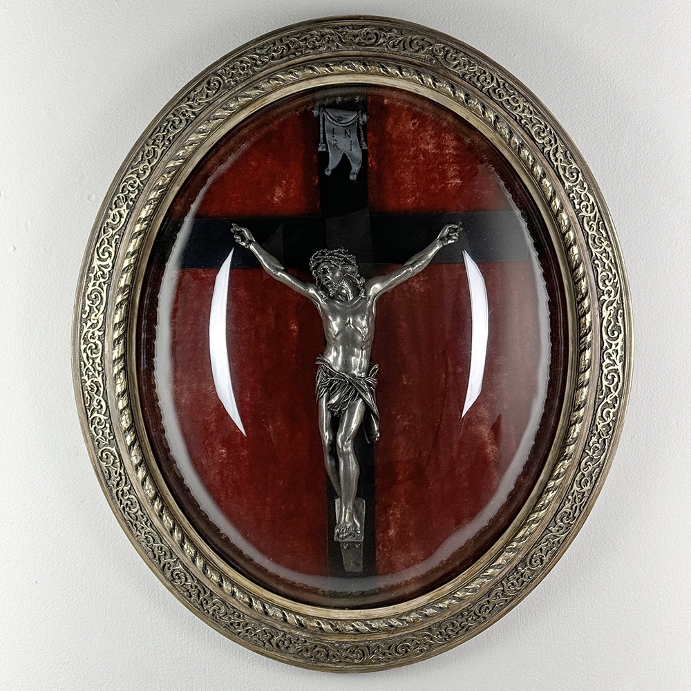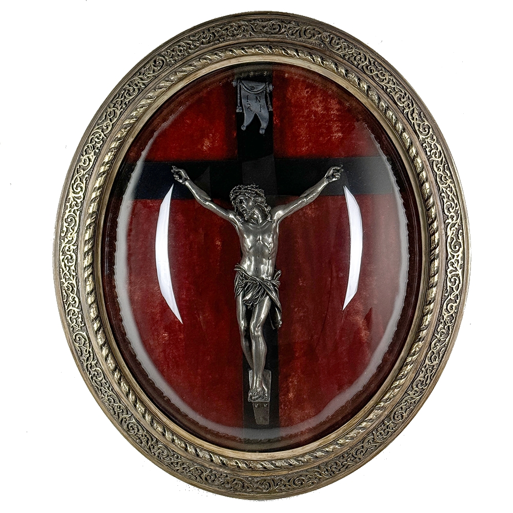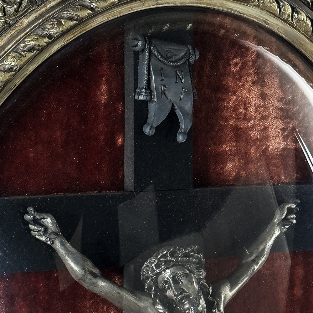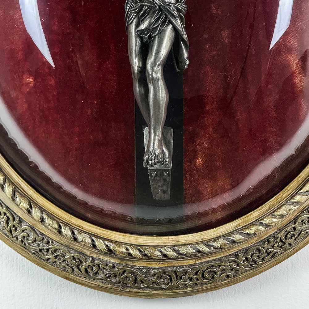 19th Century Crucifix in Oval Giltwood Frame with Glass
