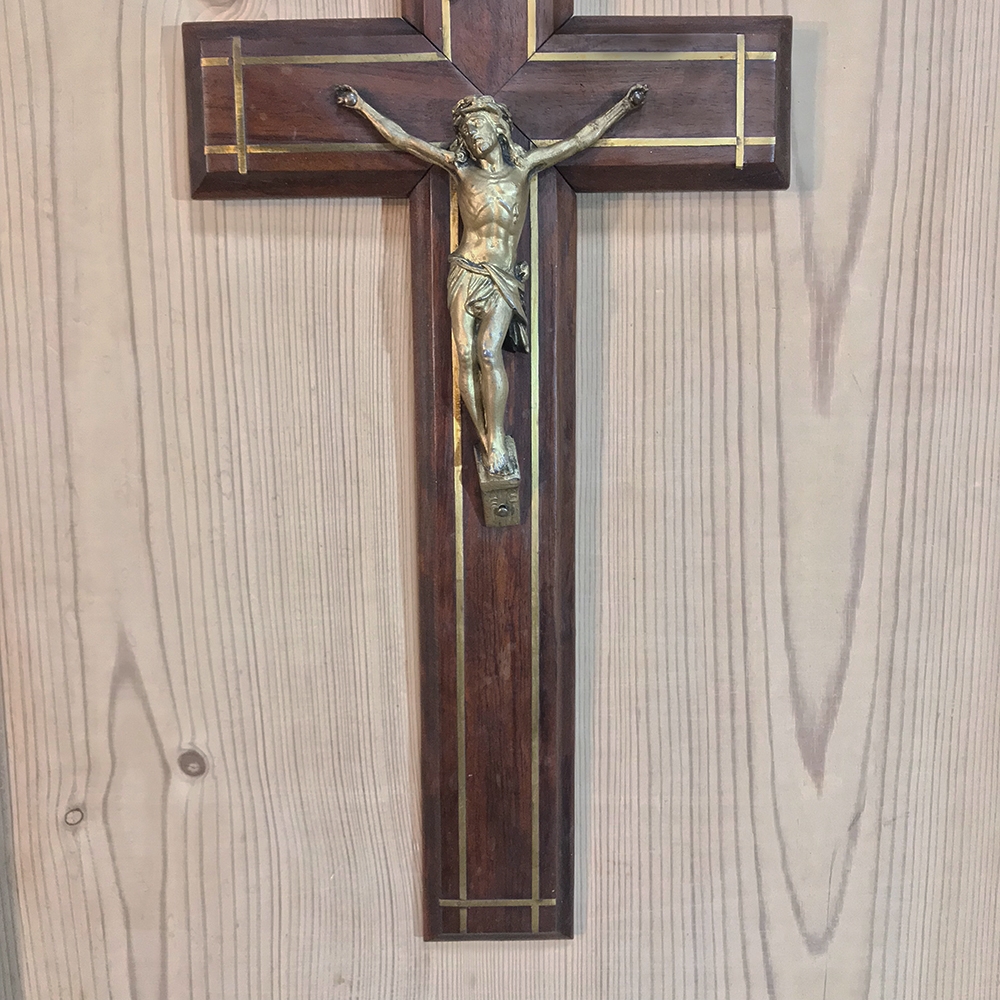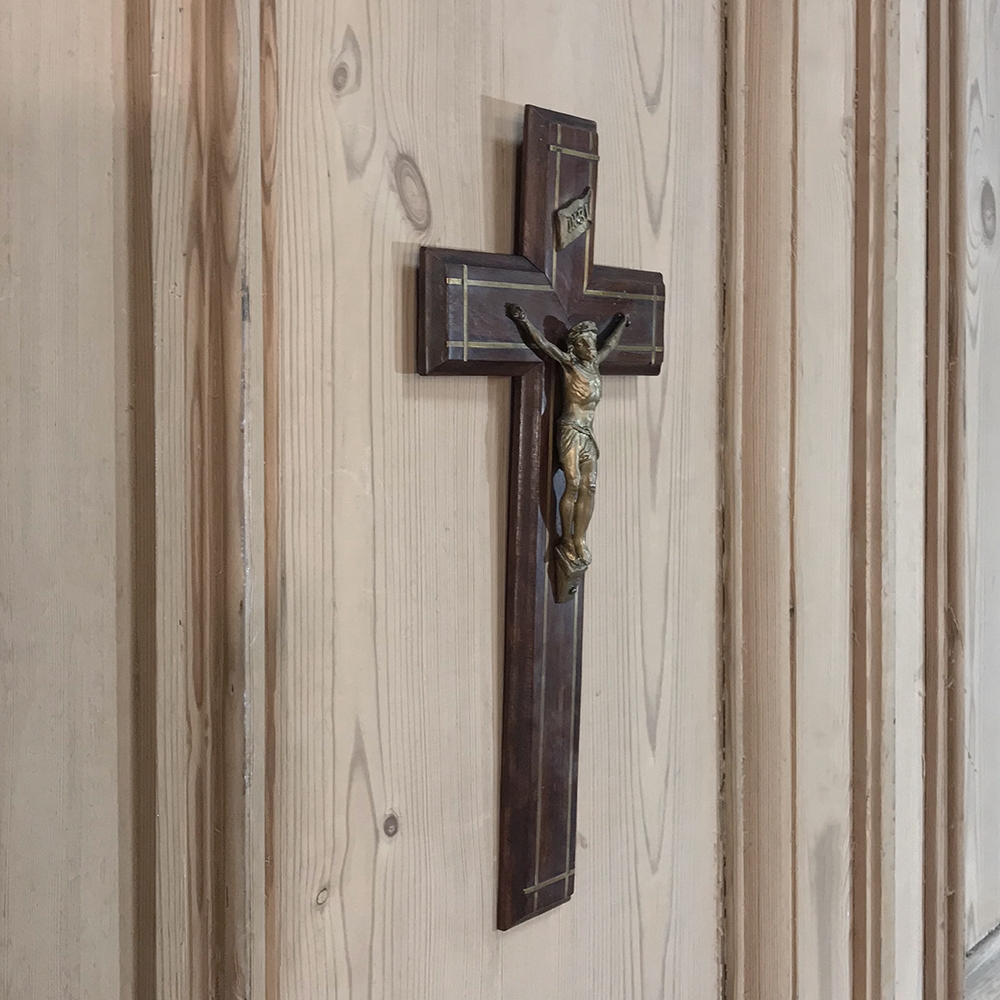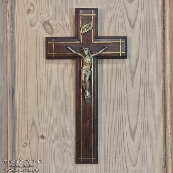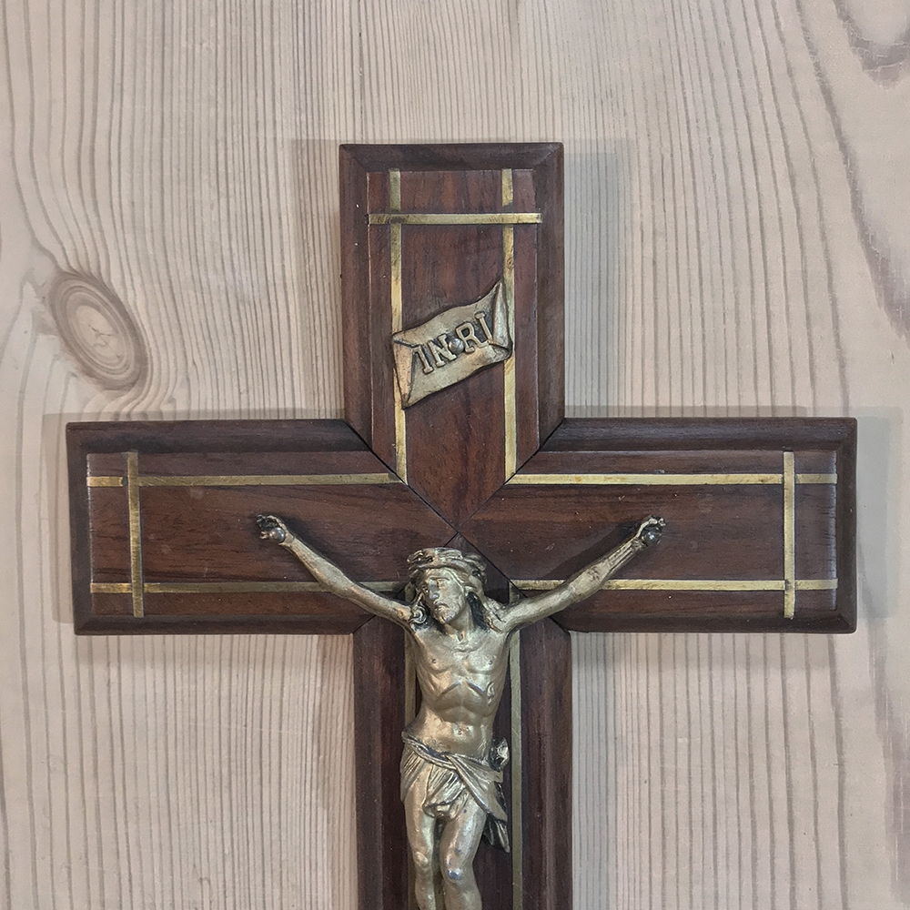 SaleAntique Hand-Crafted Wooden Crucifix with Brass Corpus