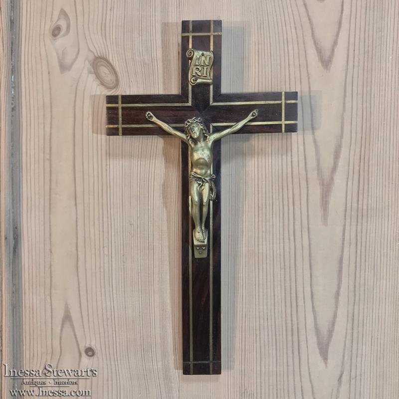 SaleAntique Hand-Crafted Wooden Crucifix with Brass Corpus