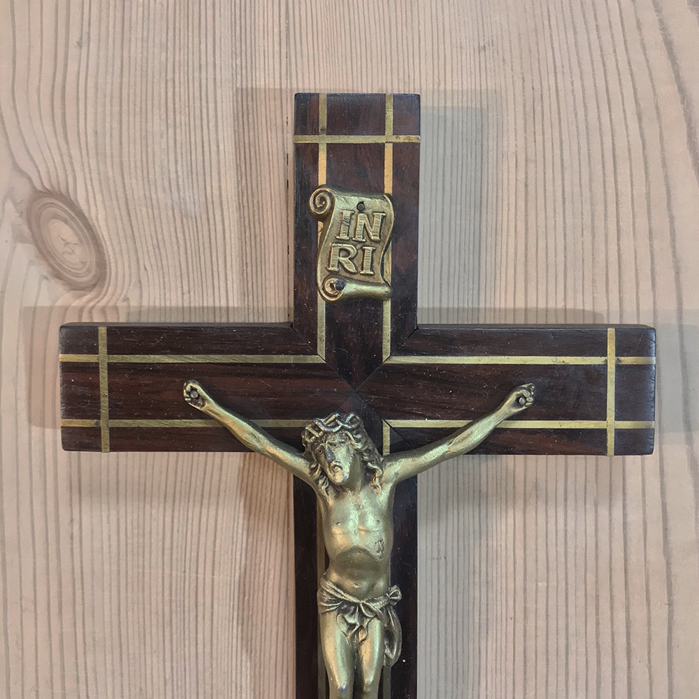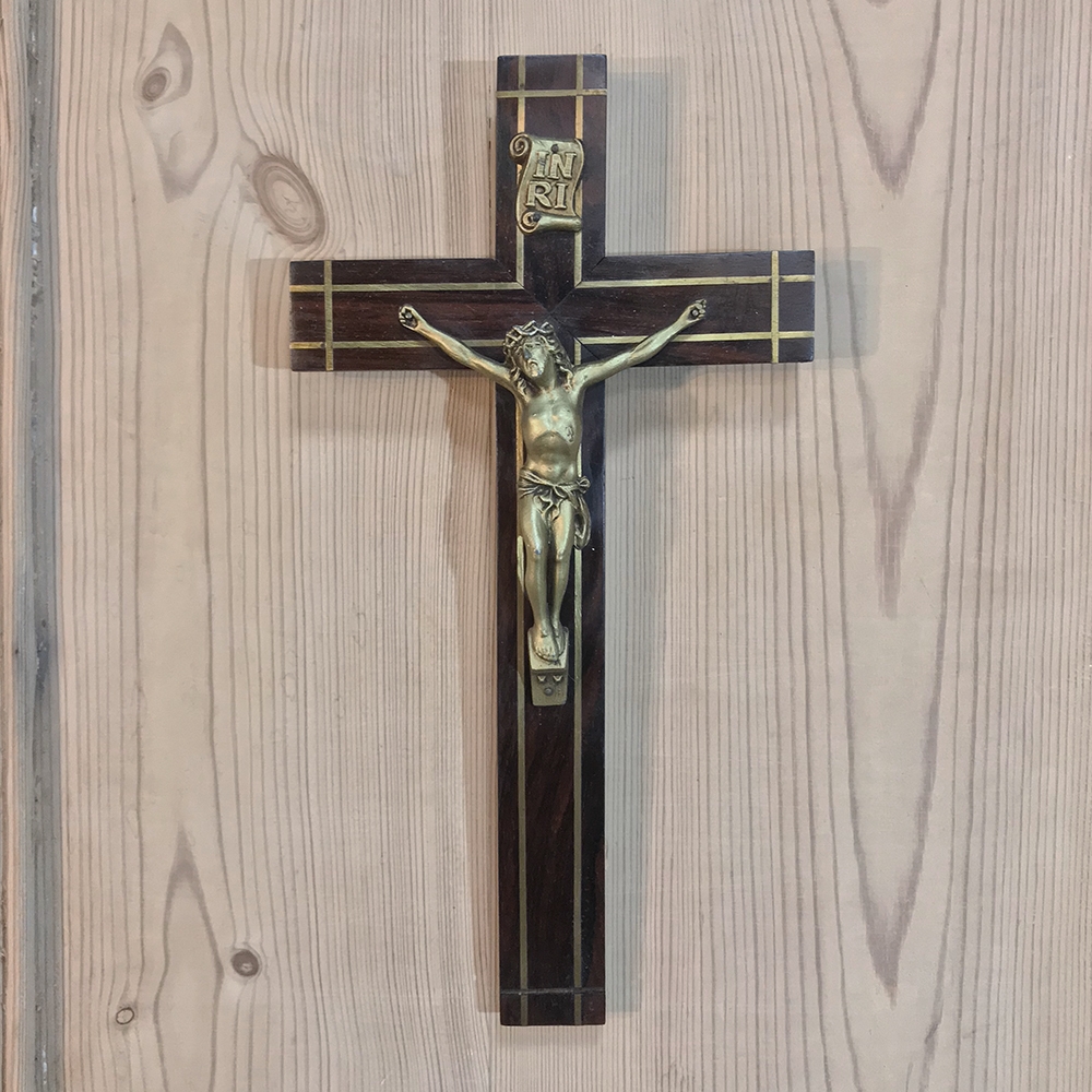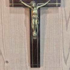Antique Hand-Crafted Wooden Crucifix with Brass Corpus