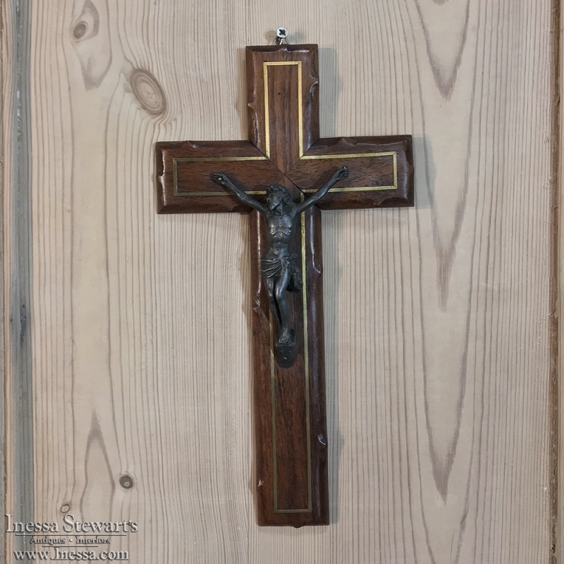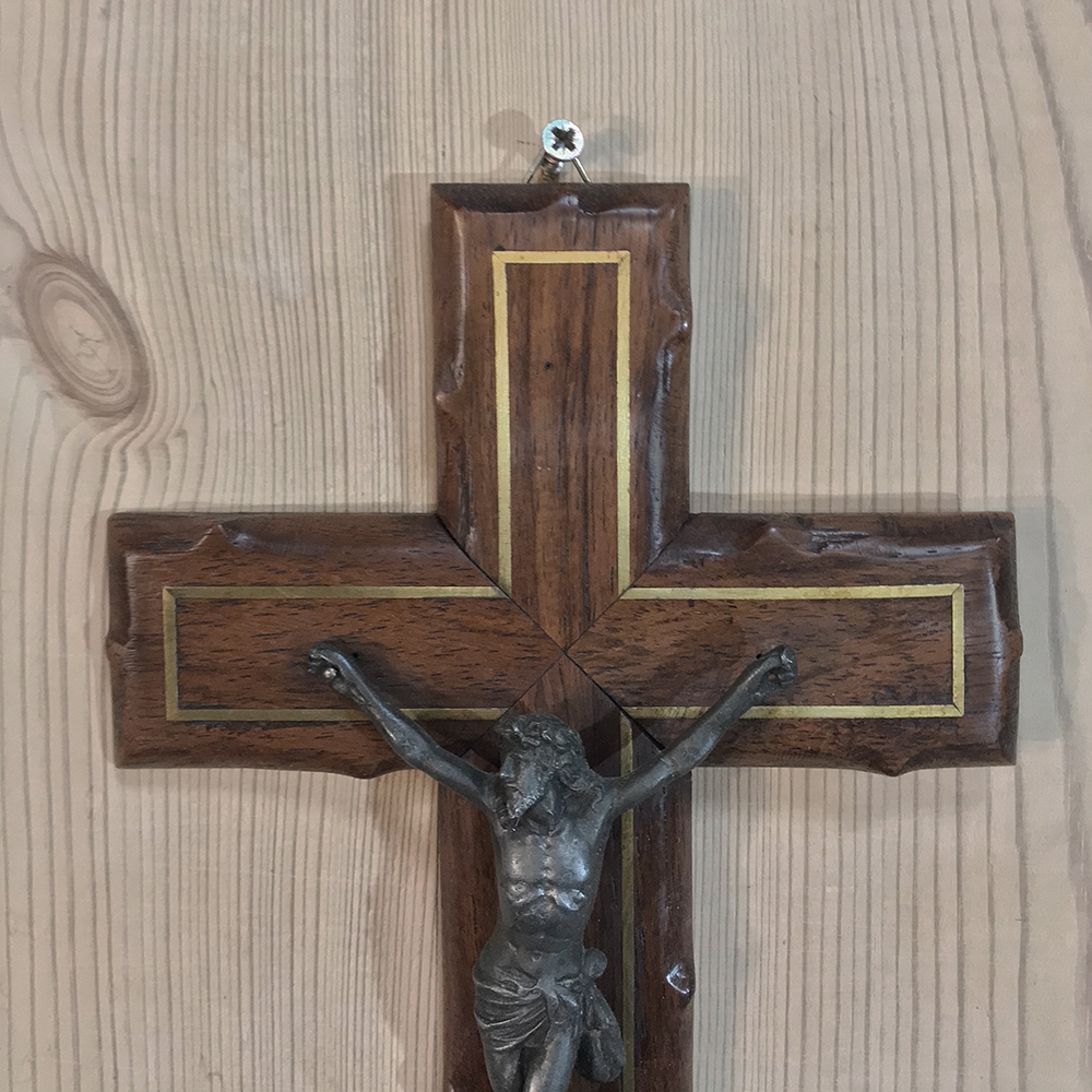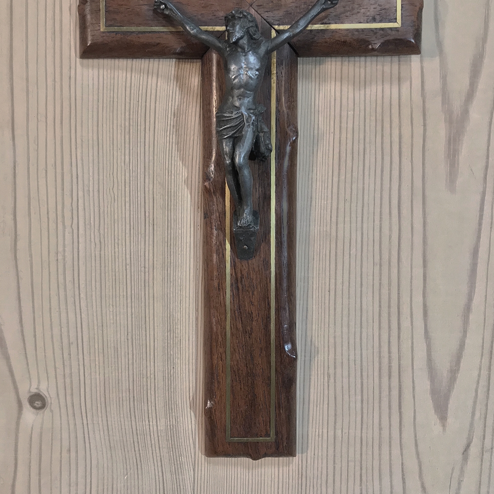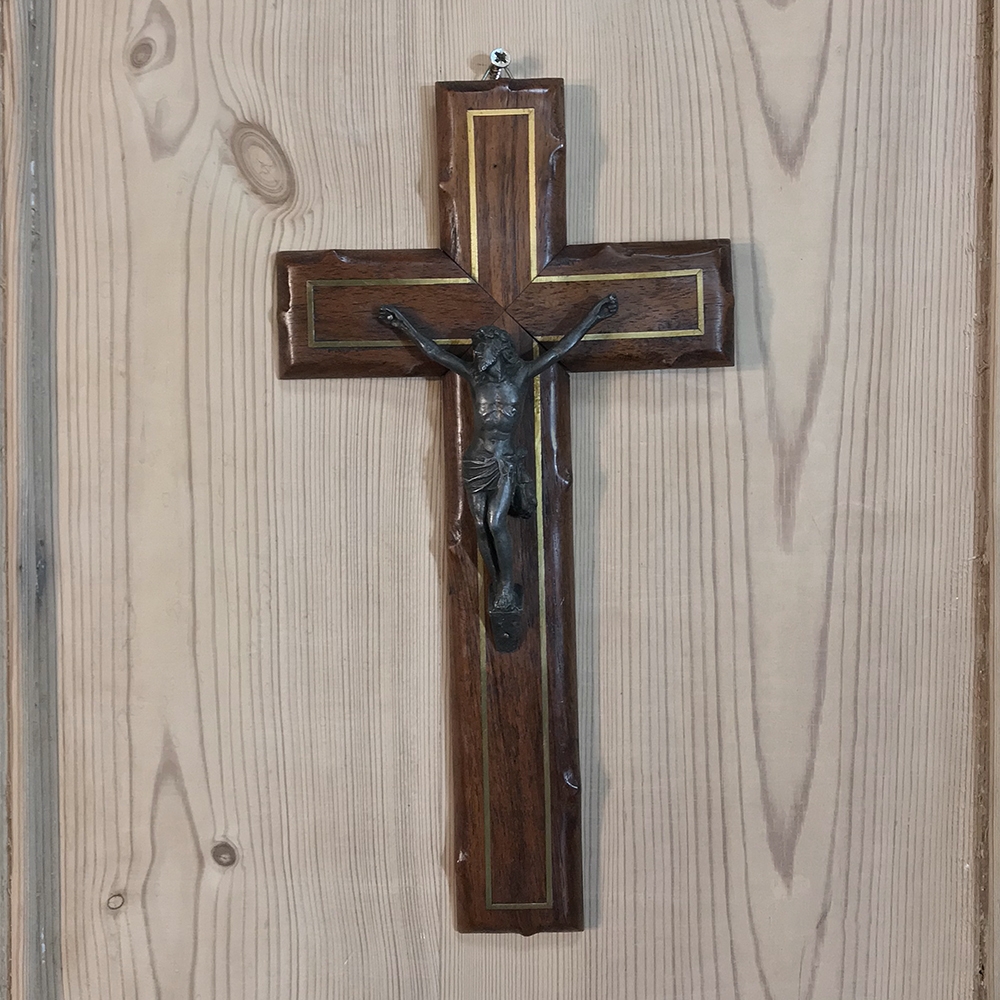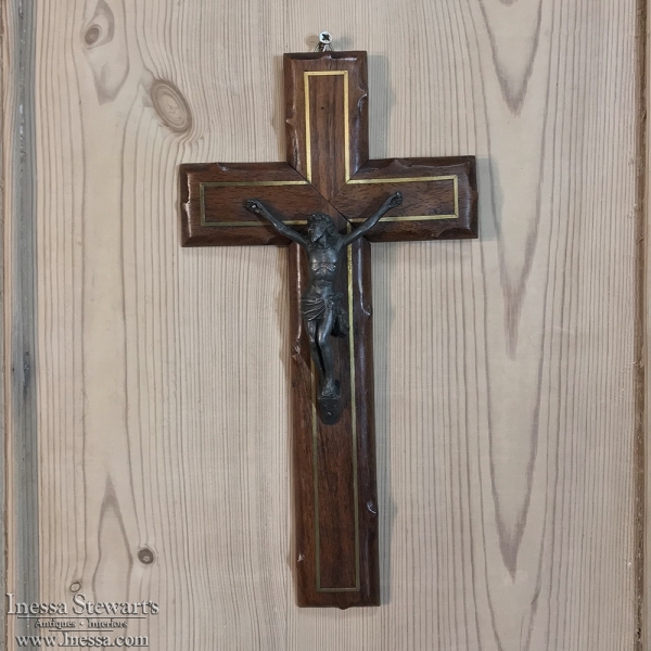 SaleAntique Hand-Crafted Wooden Crucifix with Brass Corpus