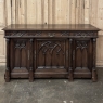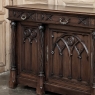 19th Century French Walnut Gothic Revival Buffet is an exquisite testament to the craftsmanship, beautiful indigenous wood and timeless design that we have come to expect from the artisans of France! Considered Europe's finest hardwood, the sumptuous French walnut exudes elegance from all angles, enhanced by the tailored Gothic molding styling which is framed both by the extensive molding detail as well as four spiral fluted columns across the front. Three drawers are fitted with the original bronze pulls with fanciful design, complemented by the cast bronze key guards on the doors. Doors and drawers open to reveal cavernous storage, which goes hand-in-hand with the generous walnut plank surface. The Gothic design has its roots in 12th century France and has remained at the forefront of architectural history for century after century.
