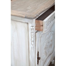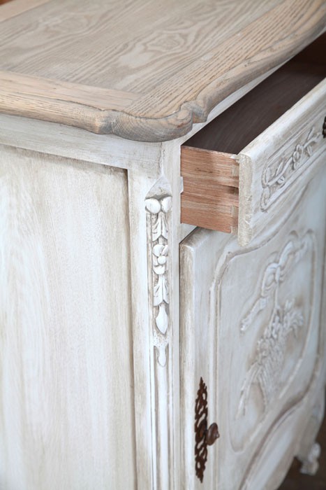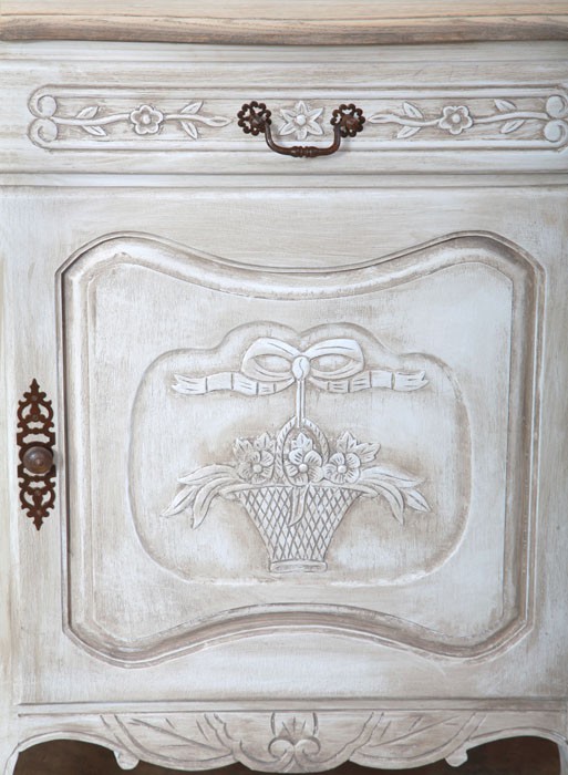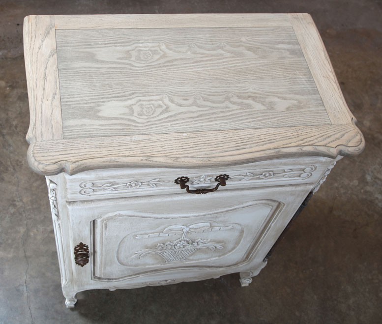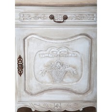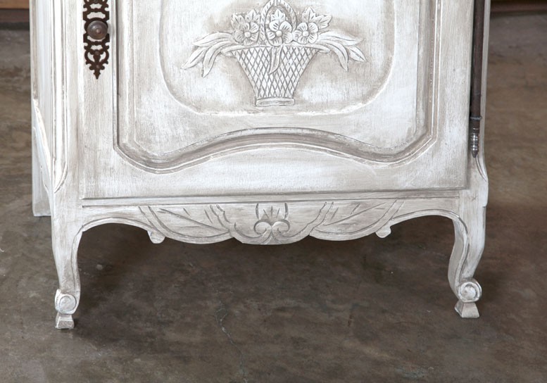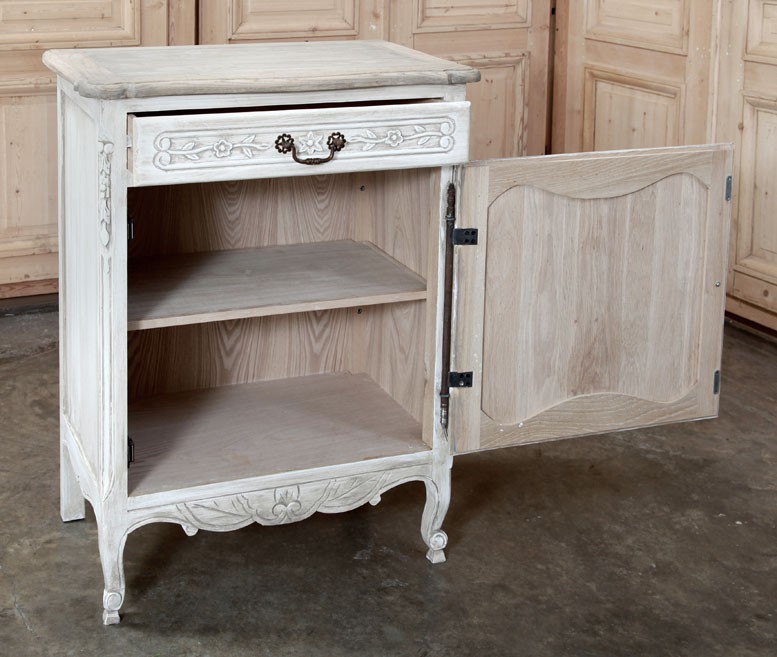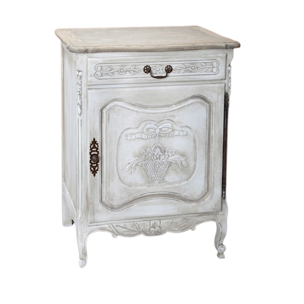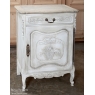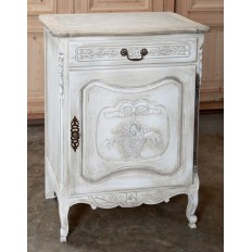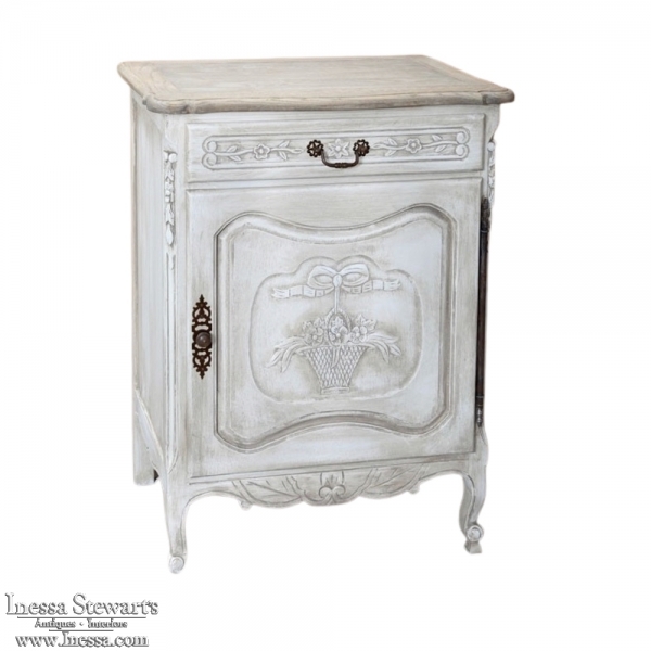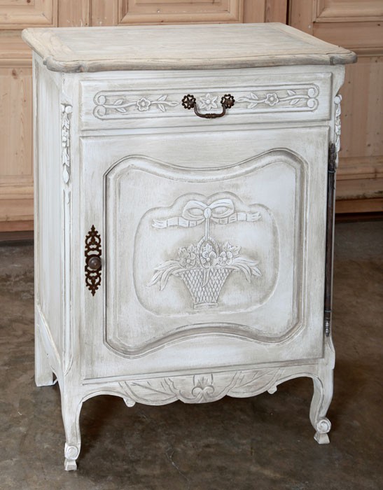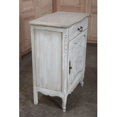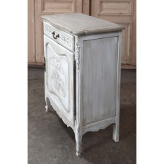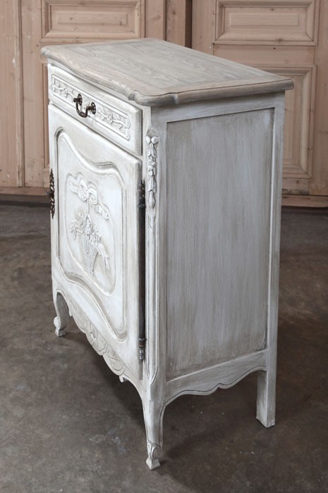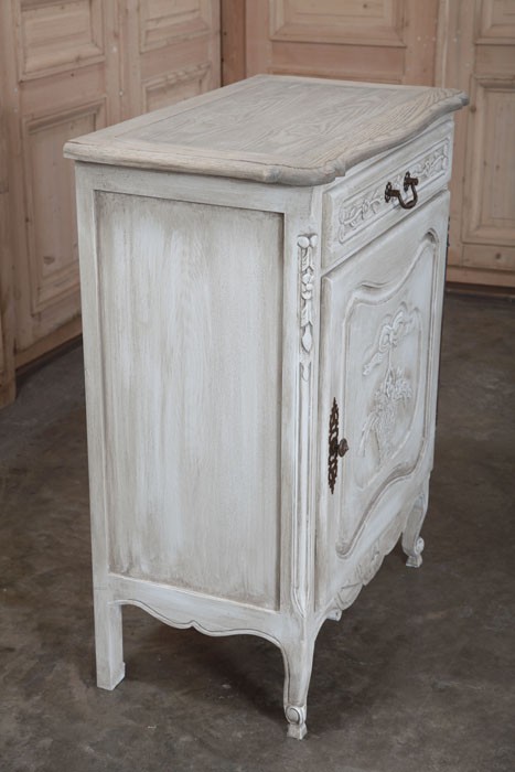 SaleDarling antique style cabinet, Painted Solid Oak Country French Confiturier. Great for adding a Country French touch to any room, with convenient storage behind the cabinet door and in the drawer. Painted in patinaed weathered white finish. Perfectly suited for your European style decor!
